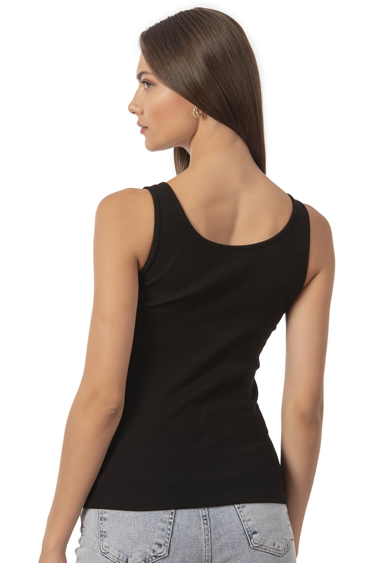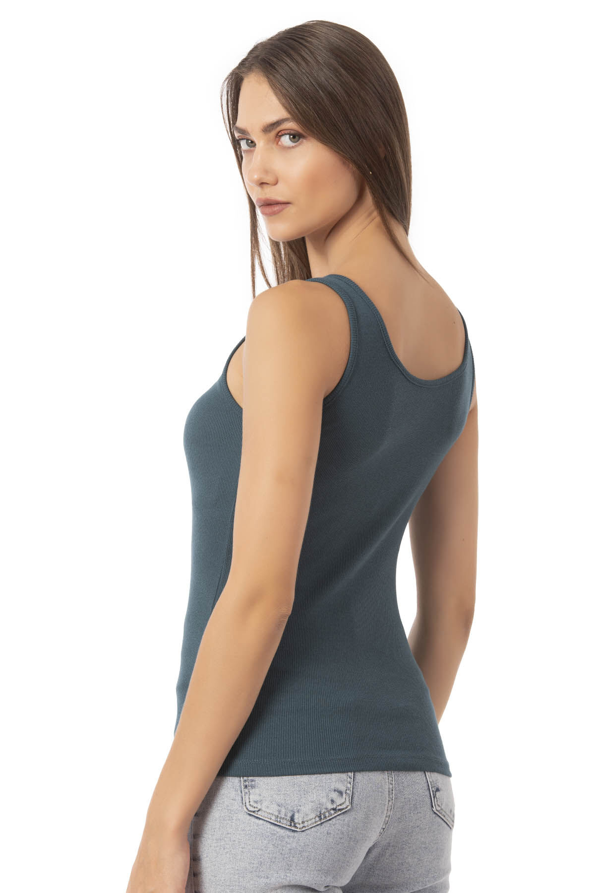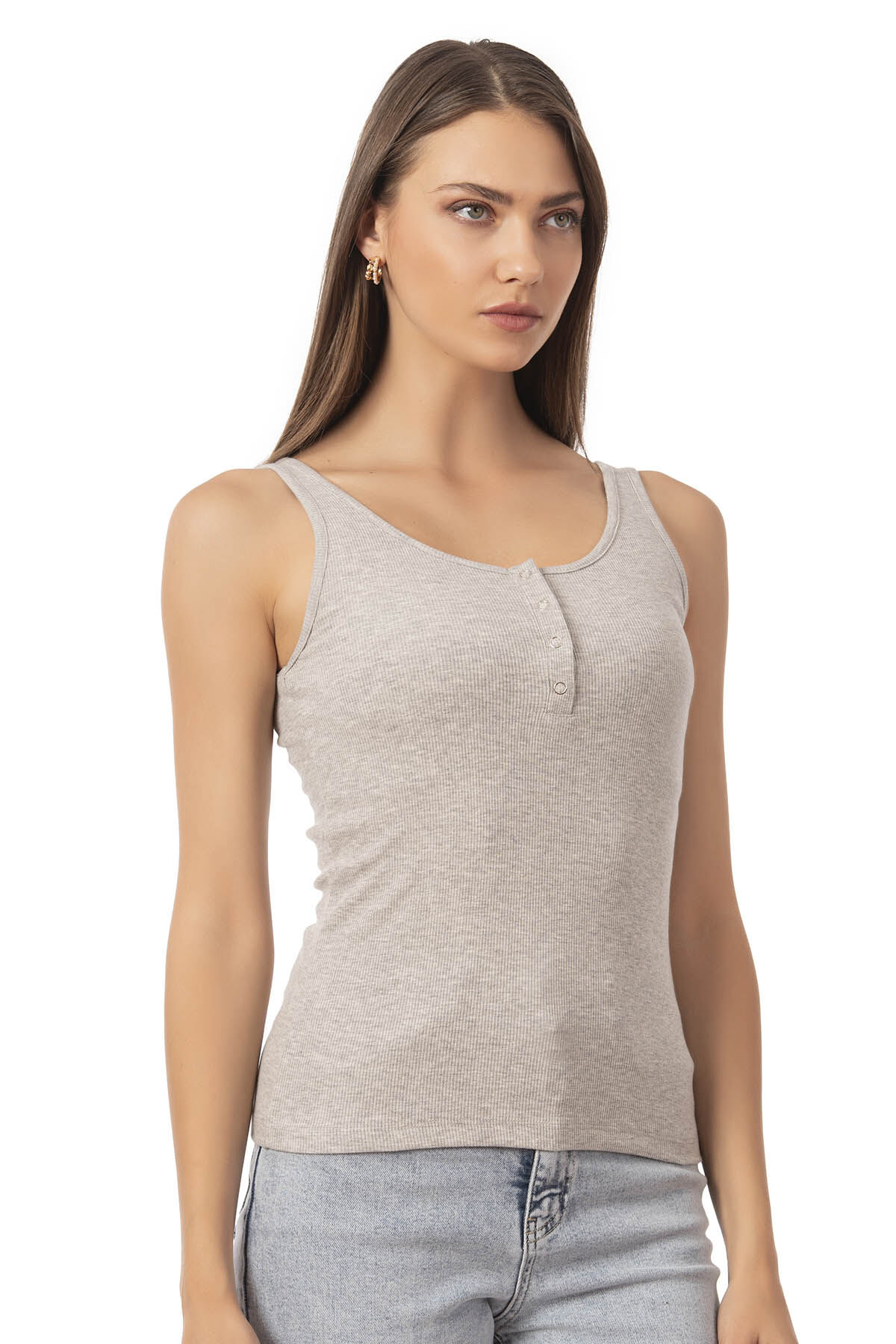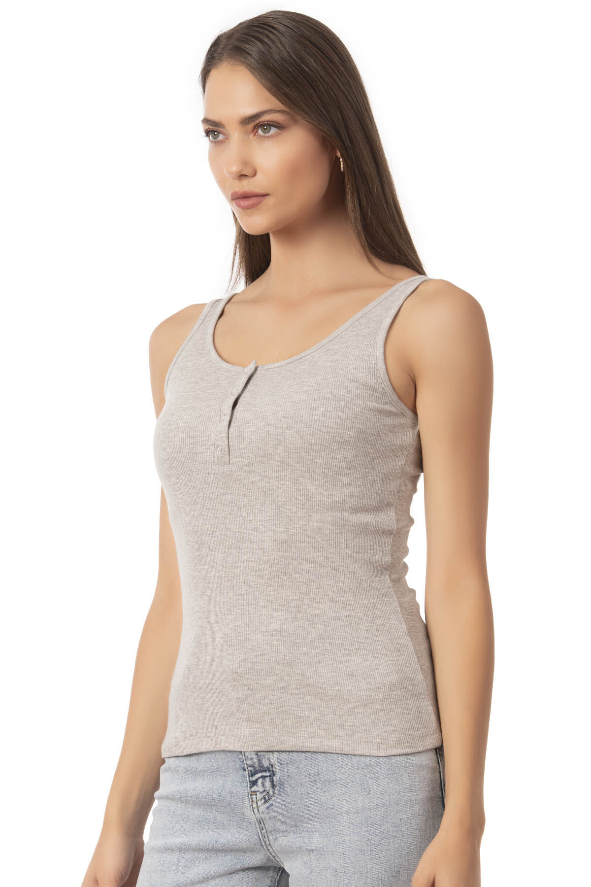 Özkan 27063 Kadın Pamuklu Likralı Kaşkorse Fitilli Esnek Rahat Önü Patlı Kalın Askılı Örme Atlet