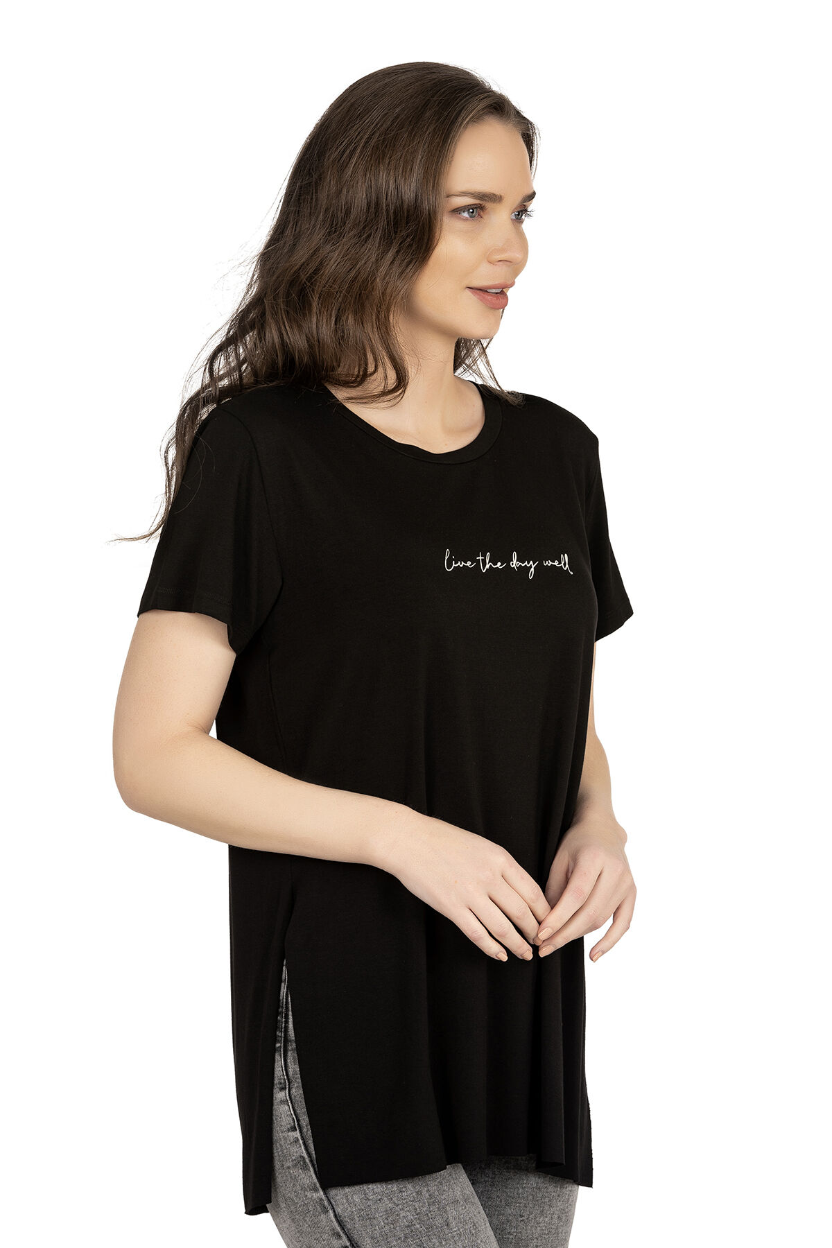 Özkan 27082 Kadın Premium Yumuşak Esnek Kumaş Vorteks Viskon Likralı Önü Yazılı Bisiklet Yaka Kısa Kollu T-shirt;