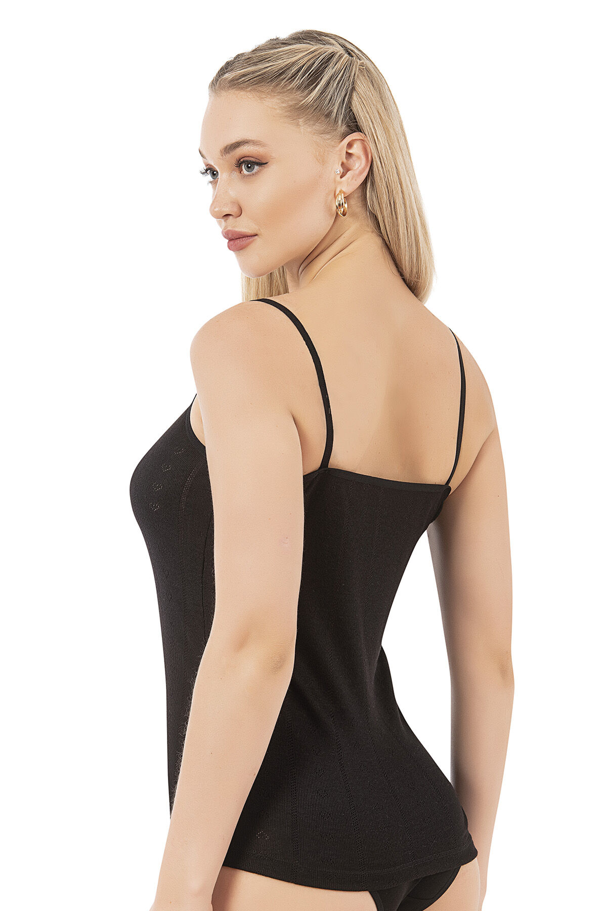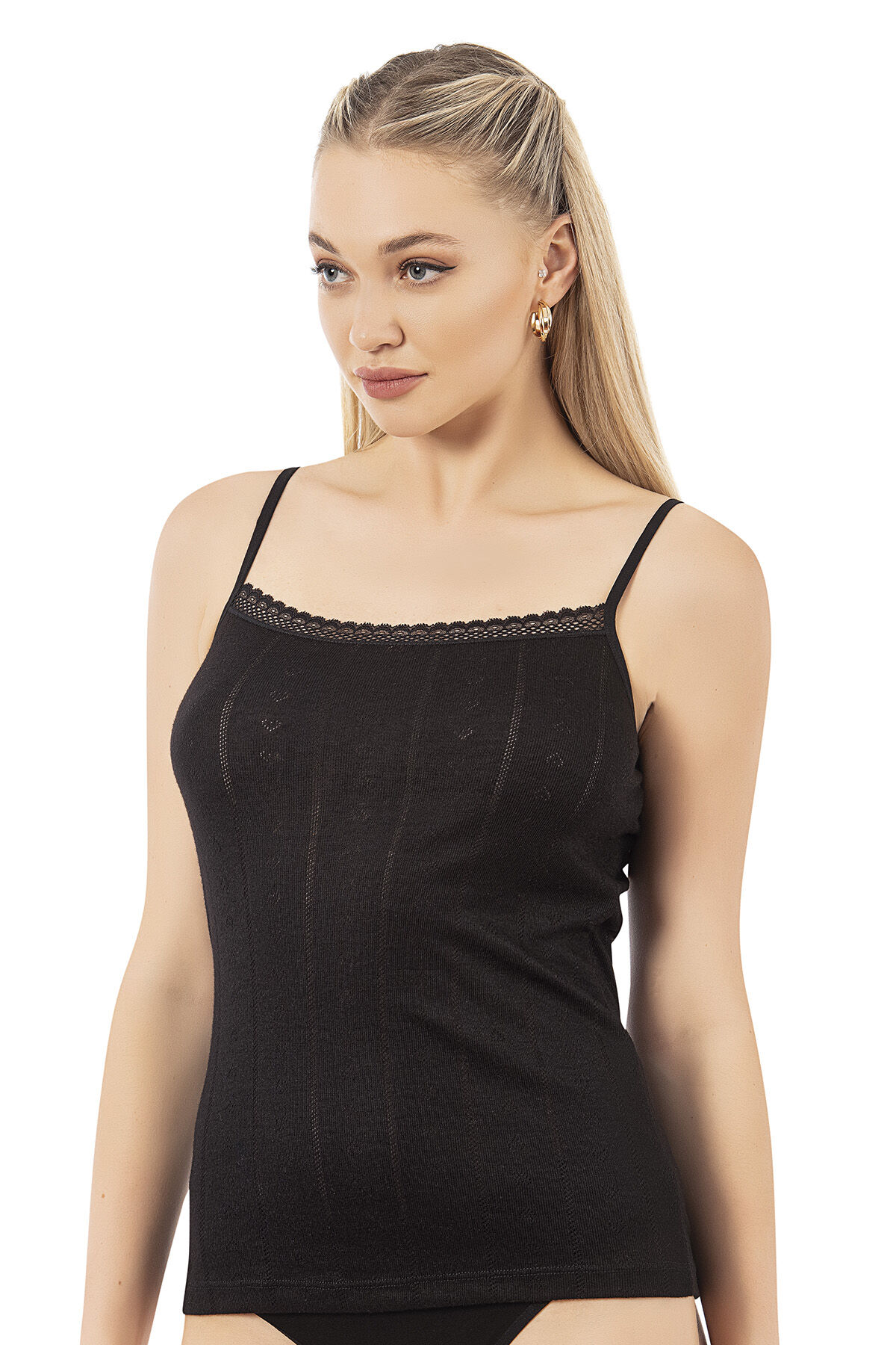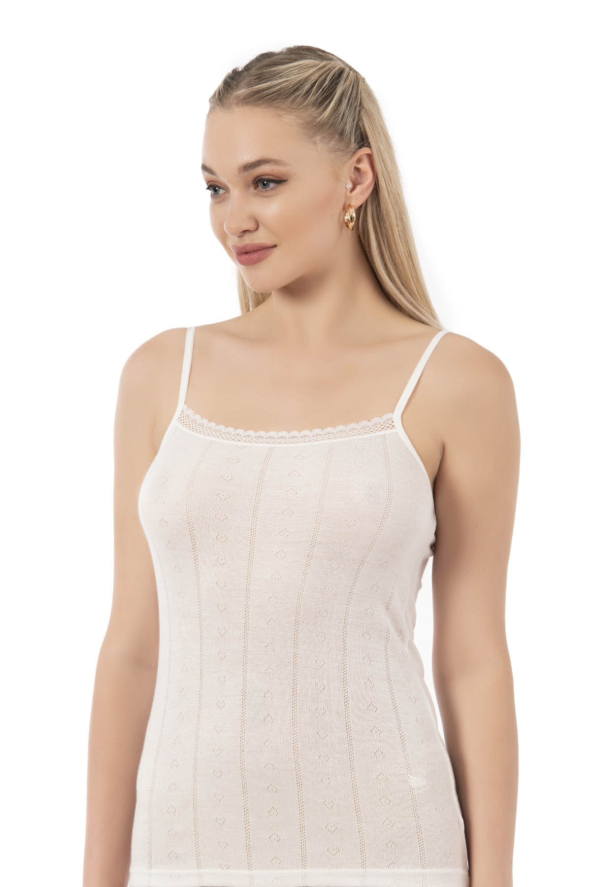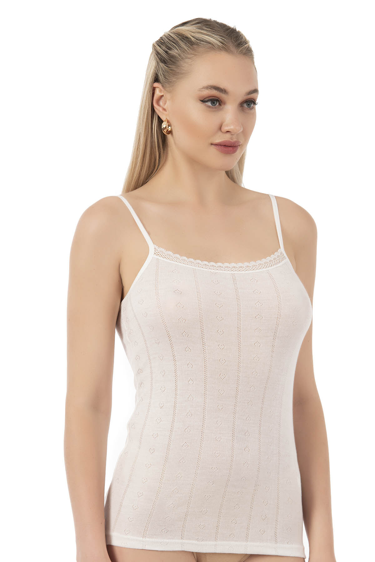 Özkan 27106 Kadın Viskon Transferli Ribana Esnek Rahat İp Askılı Örme Atlet;