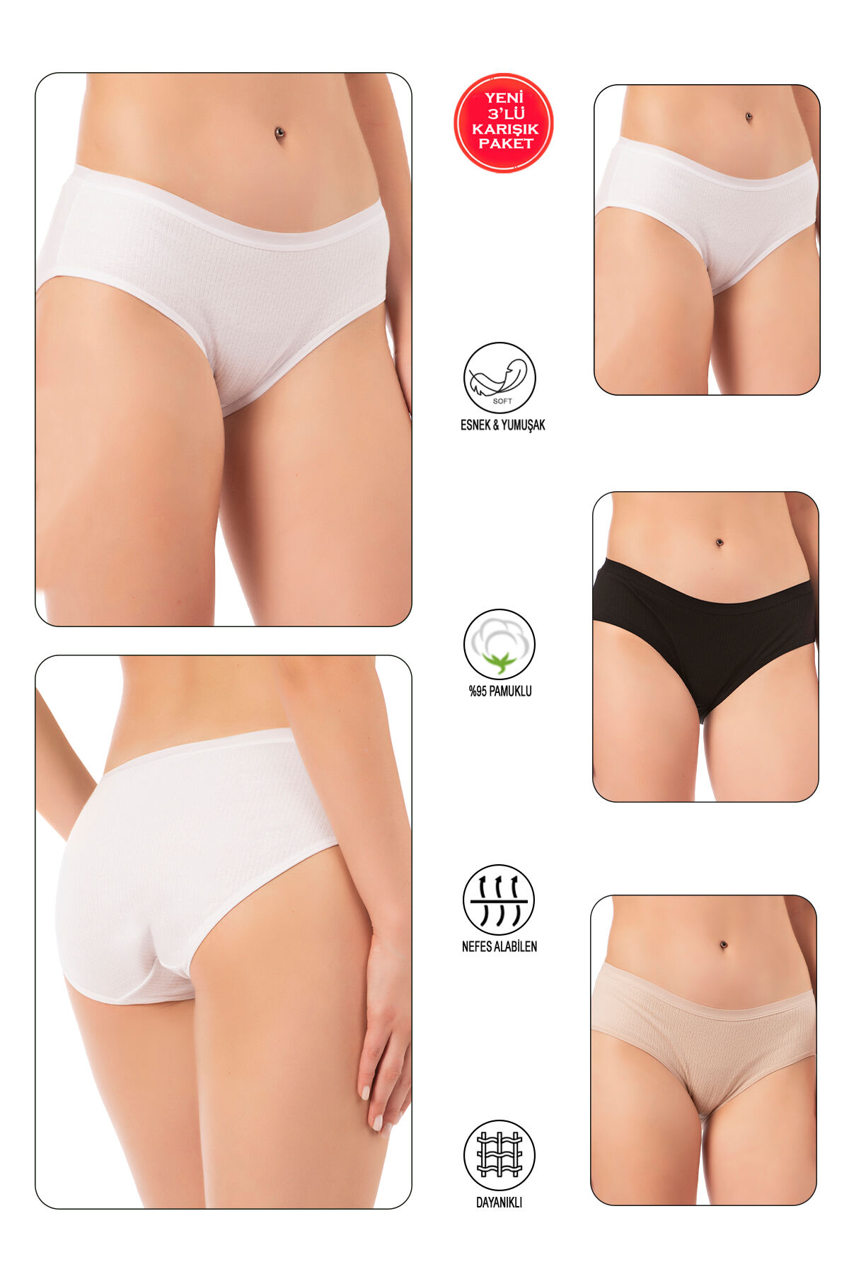 %100 Doğal pamuktan üretilmiştir.;Ürün 3'lü pakettir.;
