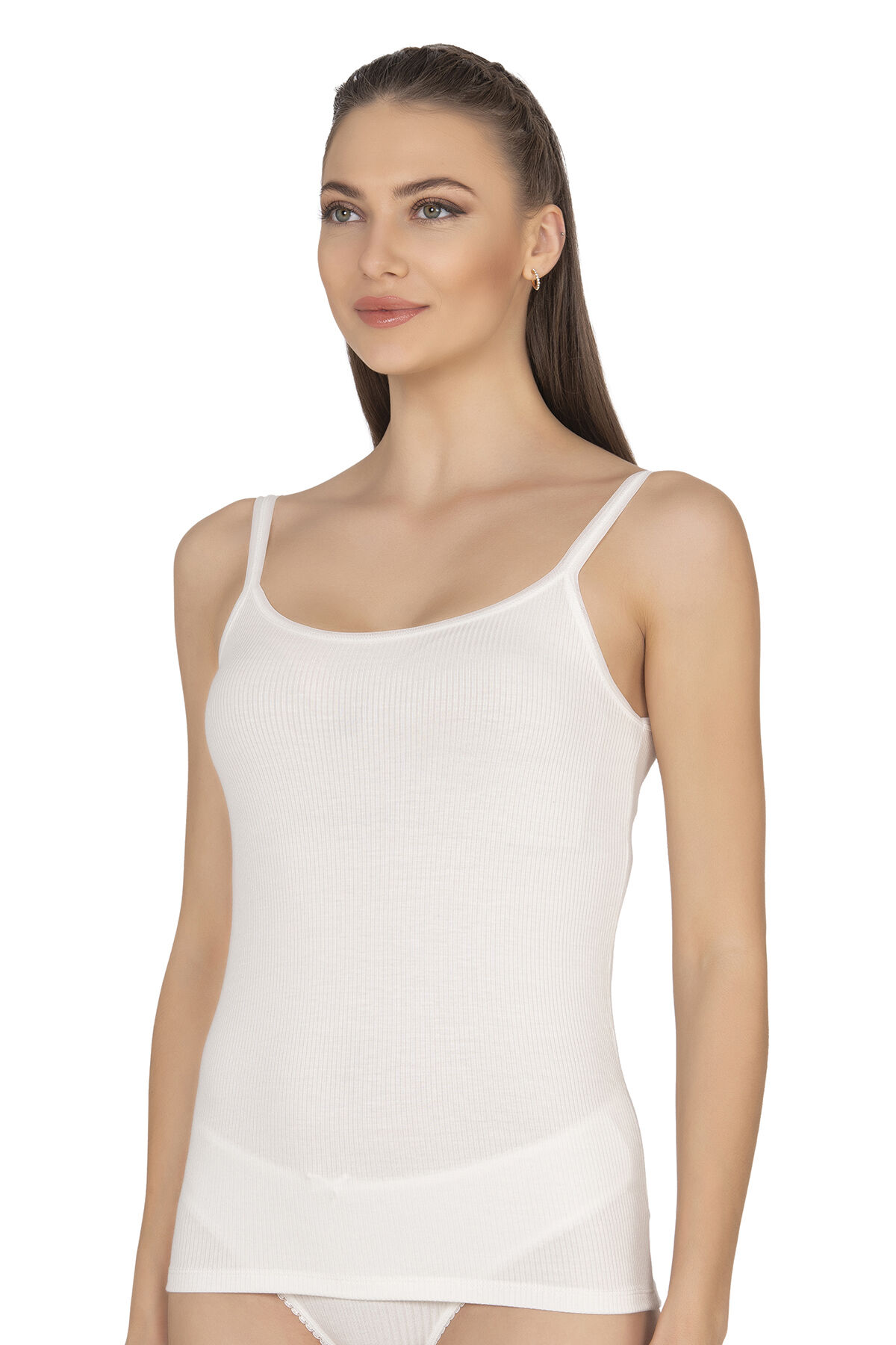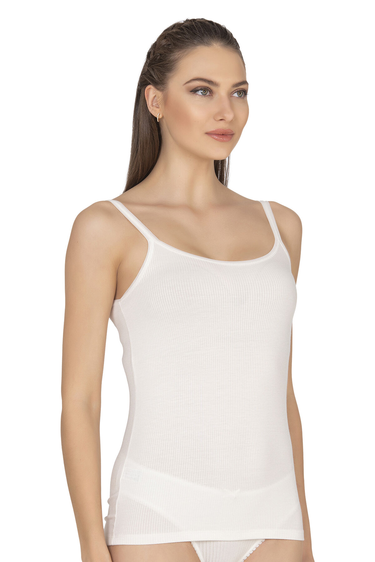 Özkan 27412 Kadın Viskon Kaşkorse Kumaş Esnek Rahat Tül Biyeli İp Askılı Atlet
