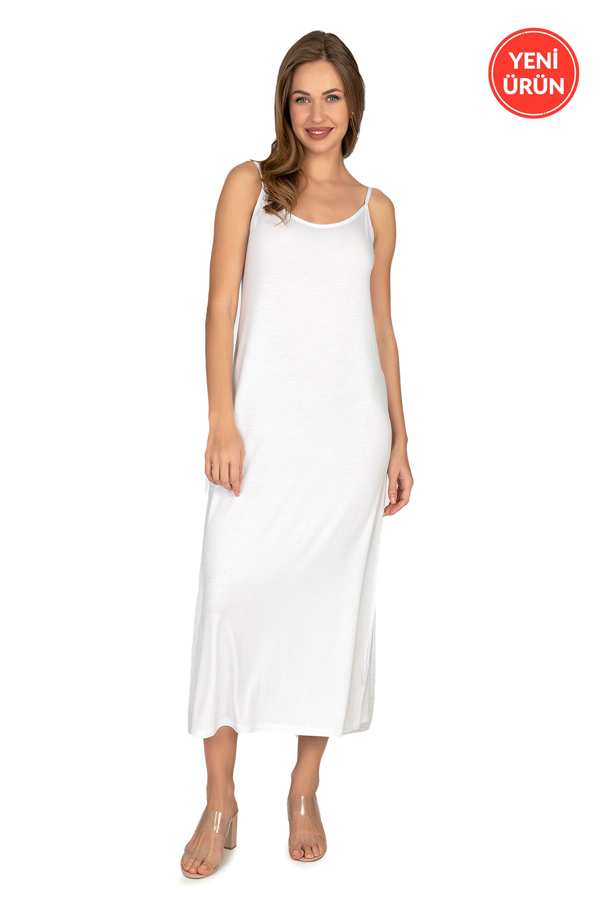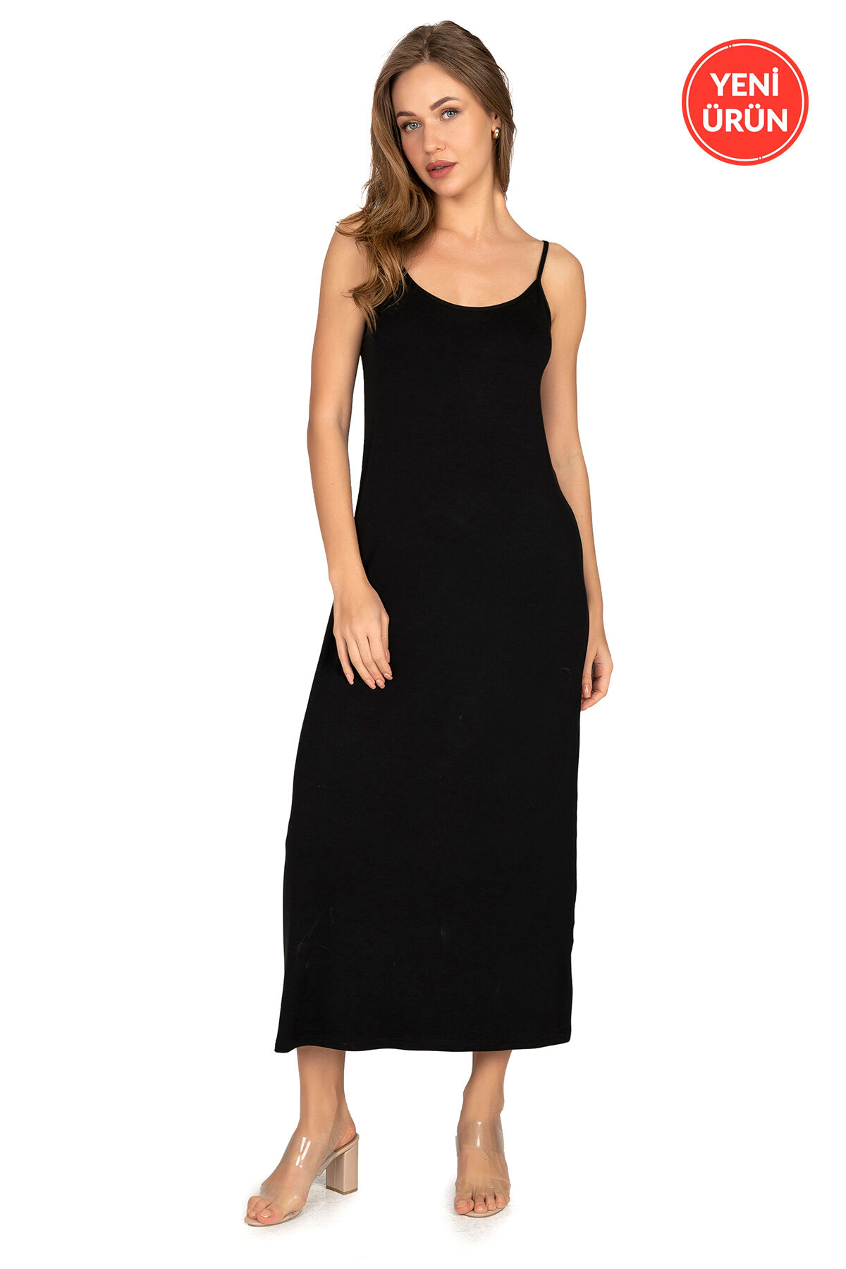 Özkan 27669 Kadın Viskon Premium Kumaş Uzun Boy İp Askılı Kombinezon Astar Elbise Jüpon
