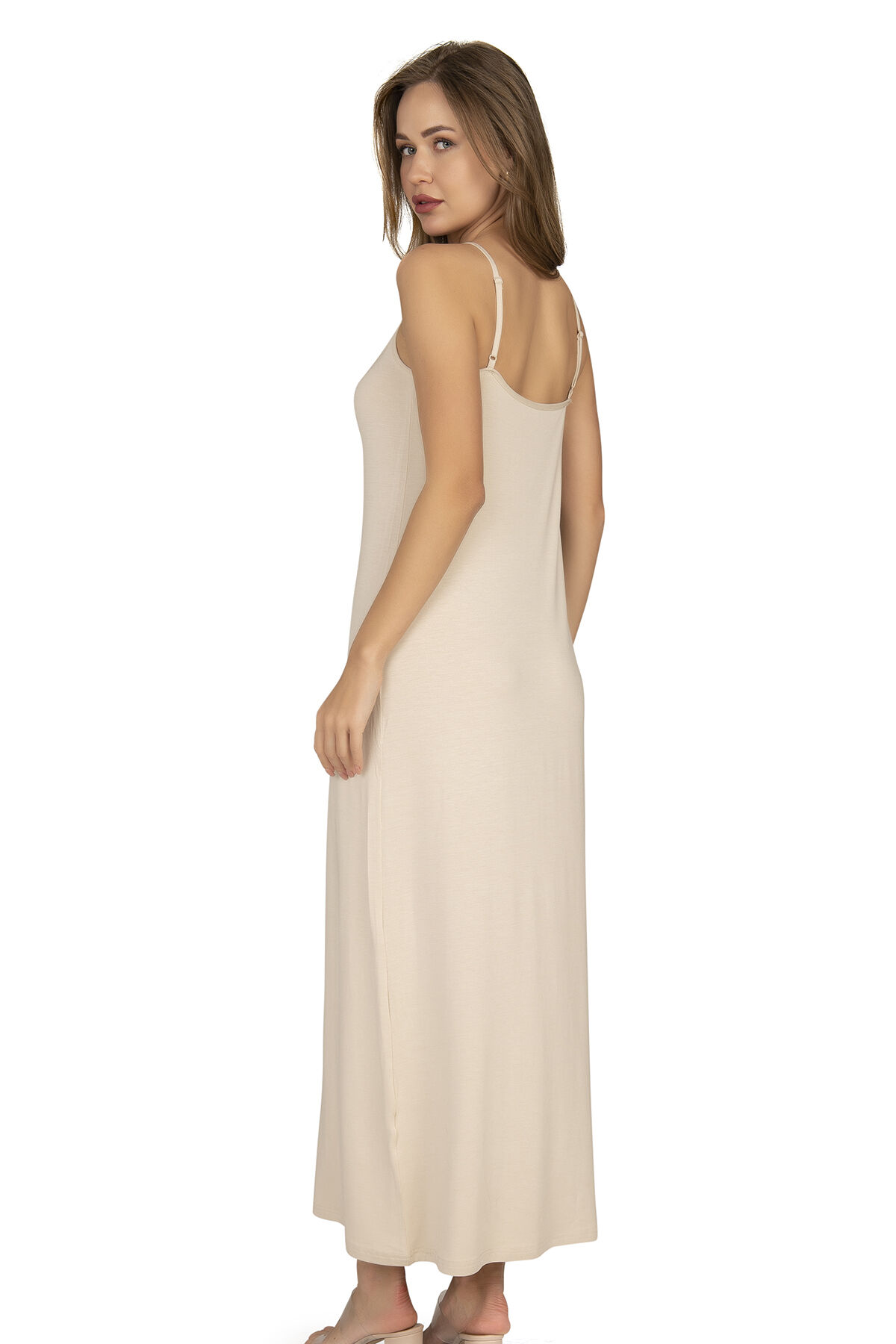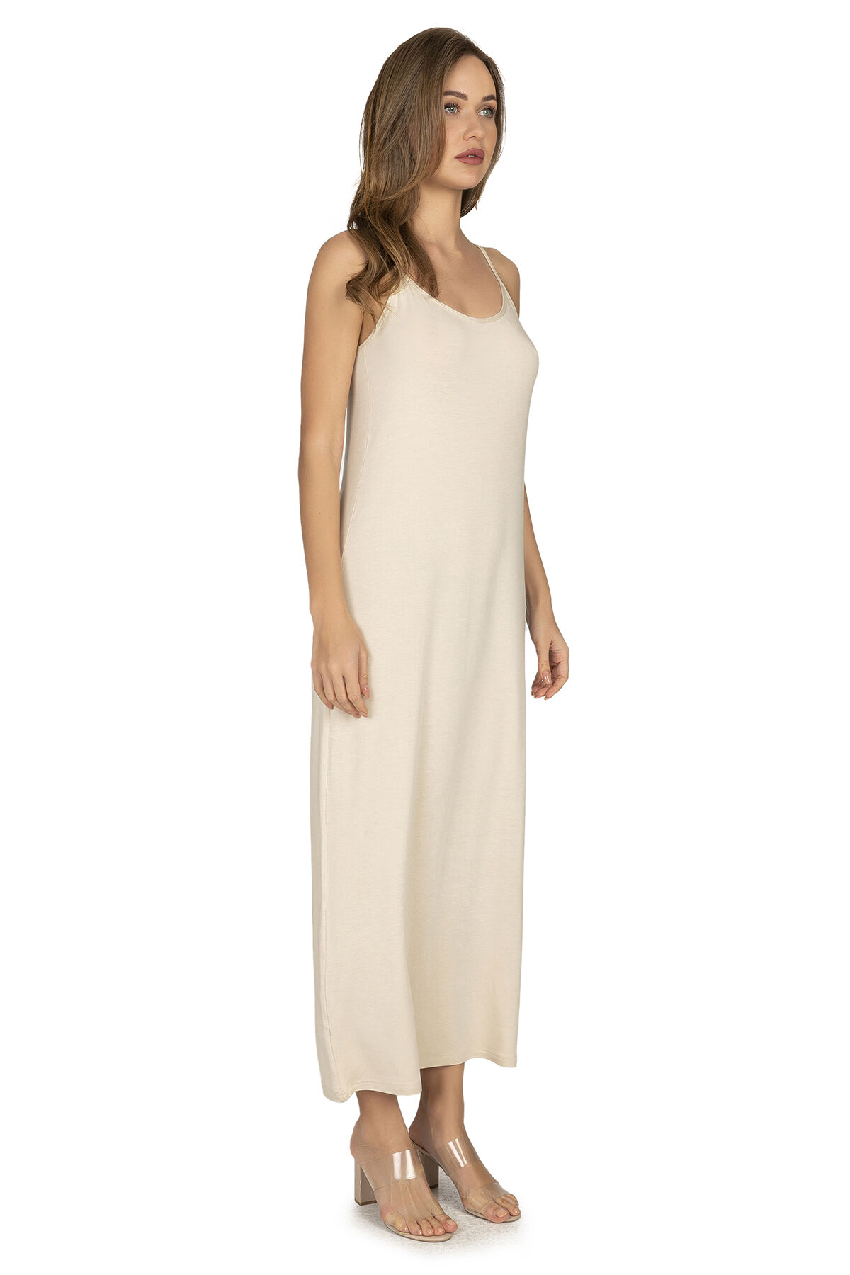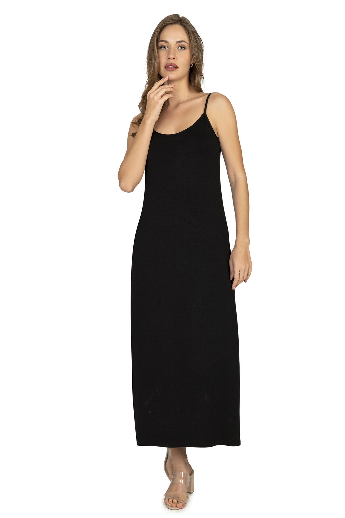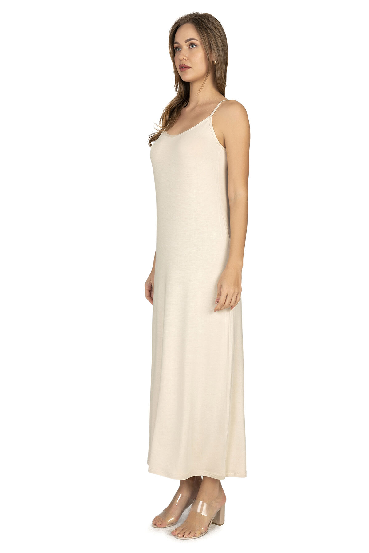 Özkan 27669 Kadın Viskon Premium Kumaş Uzun Boy İp Askılı Kombinezon Astar Elbise Jüpon;
