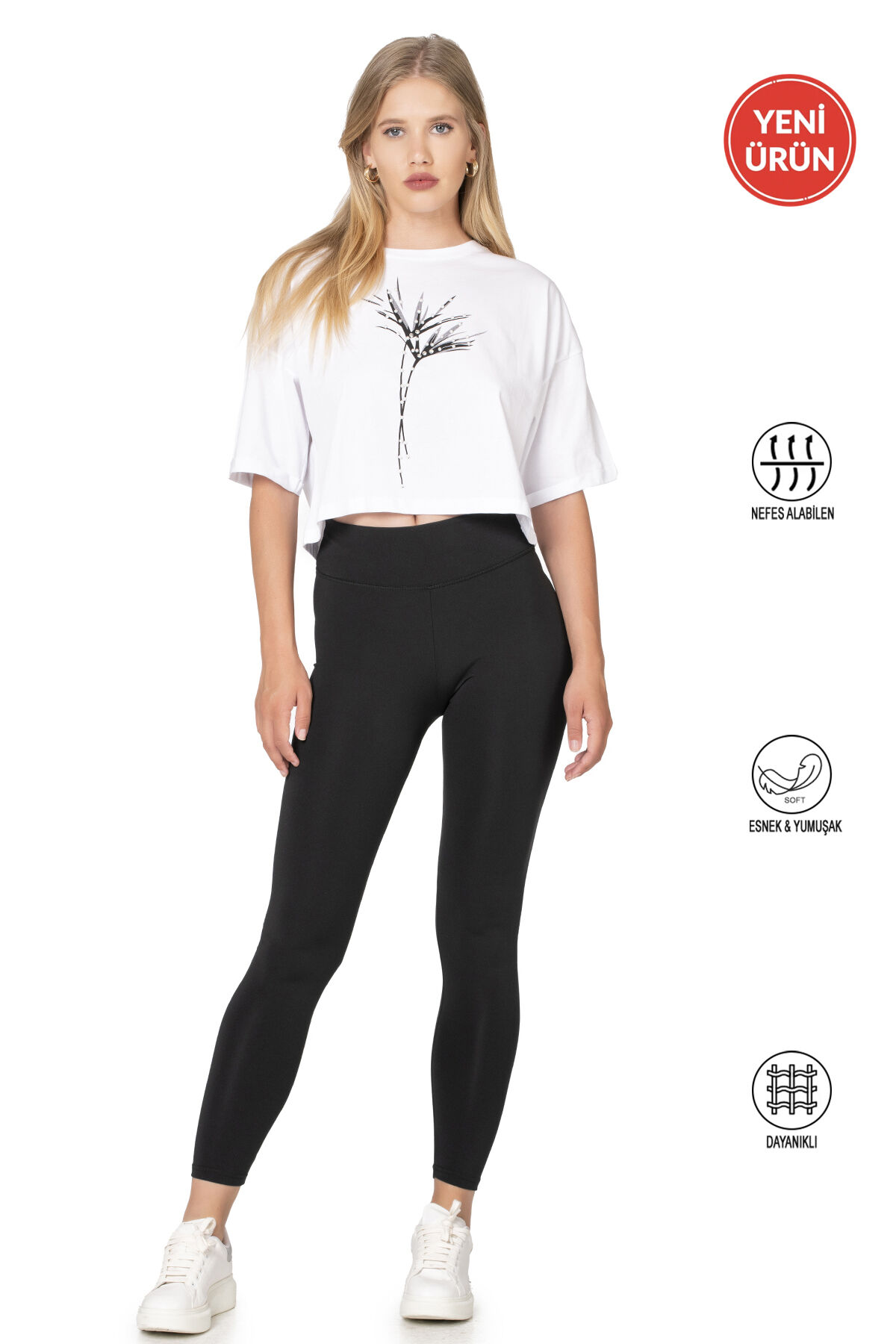 Özkan 27682 Kadın İnterlok Kumaş Likralı Yüksek Bel Esnek Rahat Düz Uzun Tayt