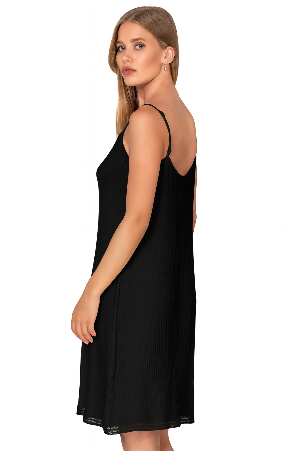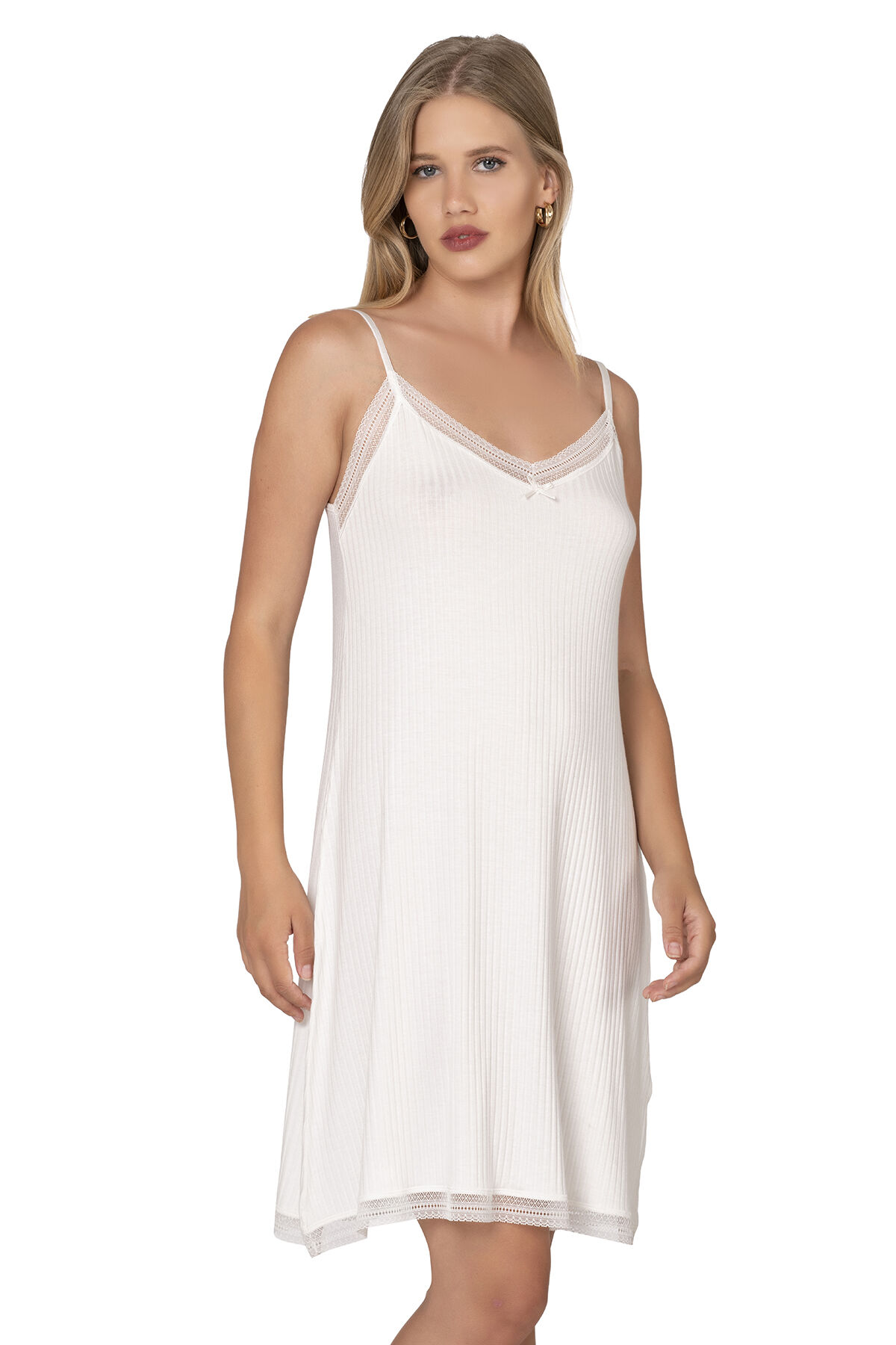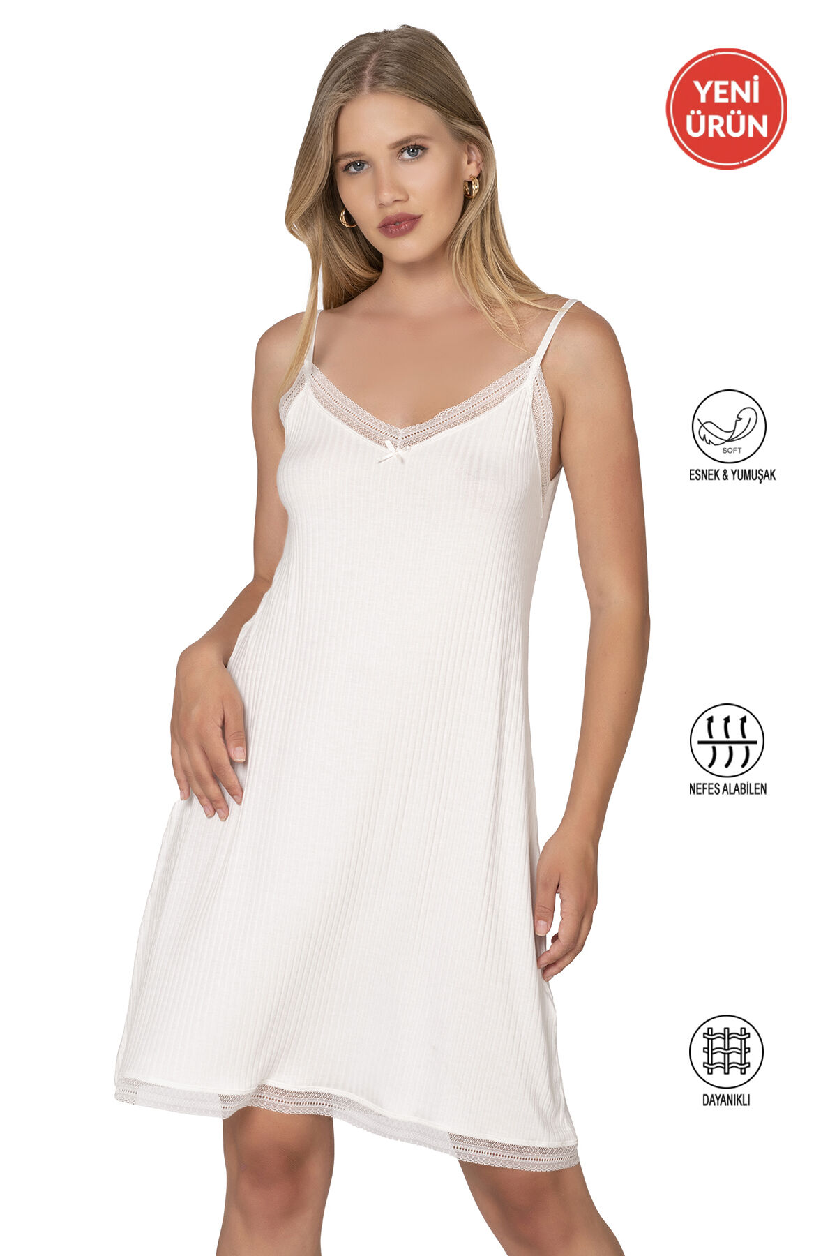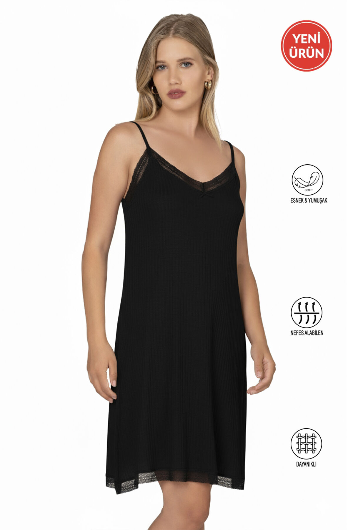 Özkan 27731 Kadın Viskon Premium Kumaş Kaşkorse Dantel Detaylı Diz Üstü Kombinezon Elbise Astar Jüpon