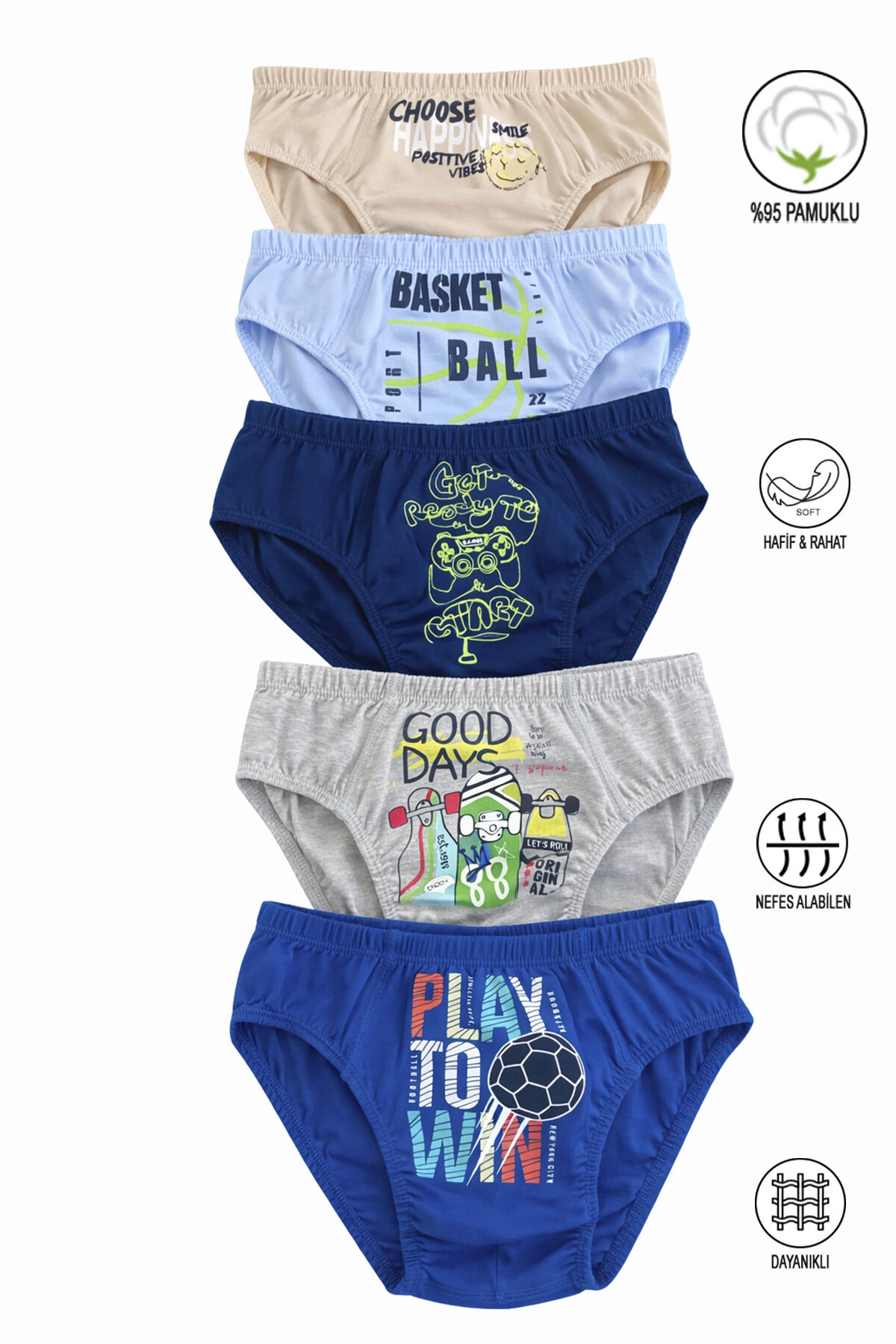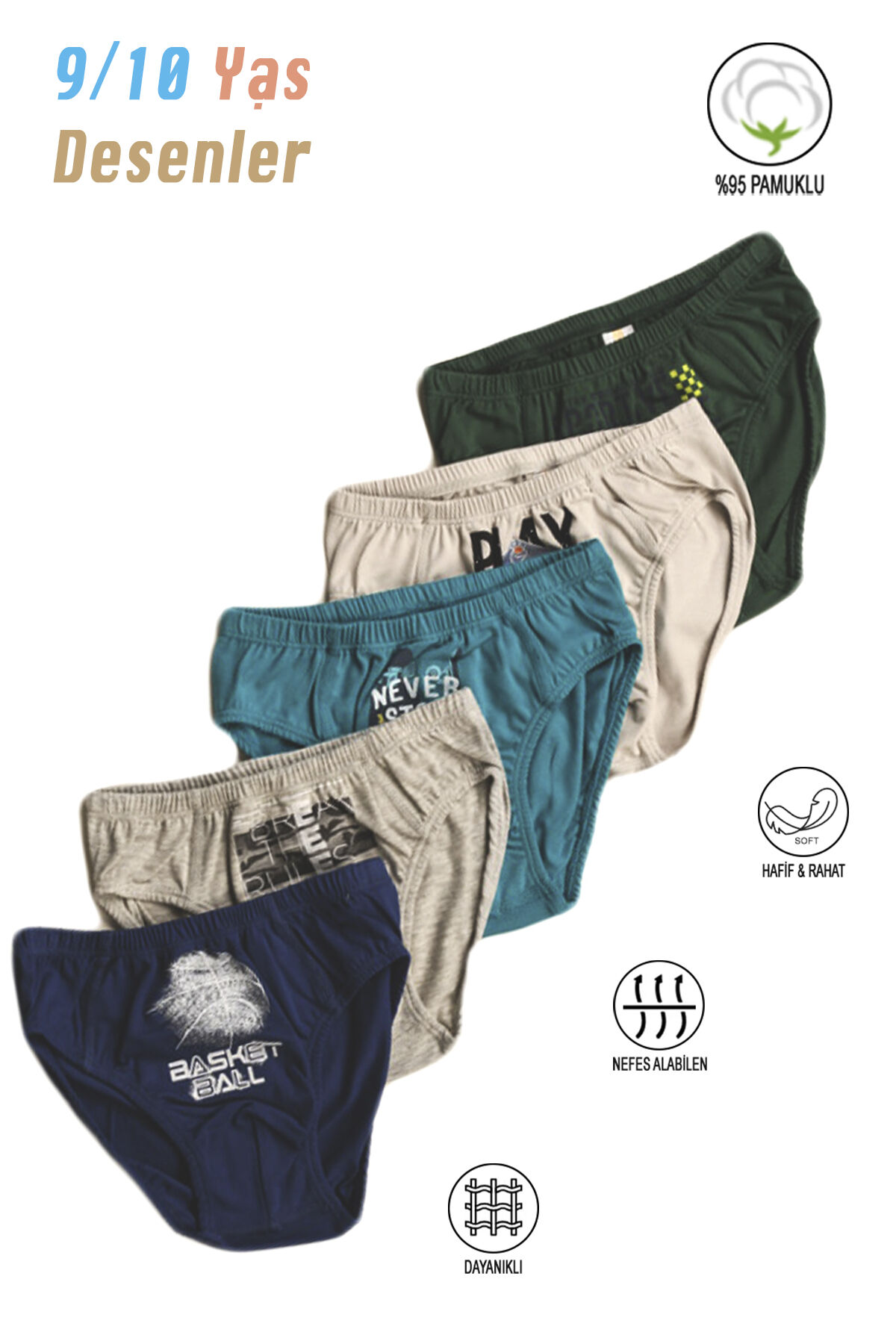 Özkan 31801 5'li Paket Erkek Çocuk Karışık Renkli Desenli Pamuklu Yumuşak Rahat Slip Külot