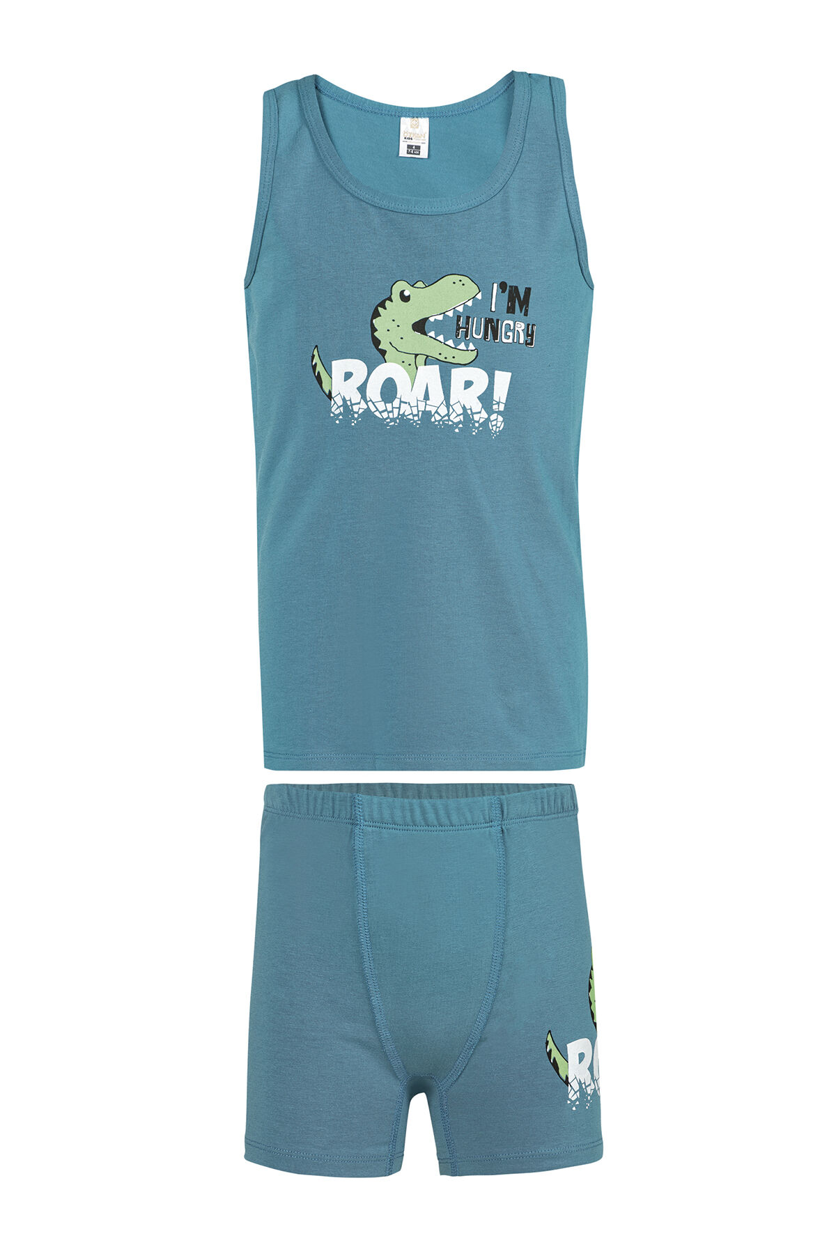 Özkan 32033 Erkek Çocuk Pamuklu Yeşil Kalın Askılı Atlet Şort İç Giyim Takım;