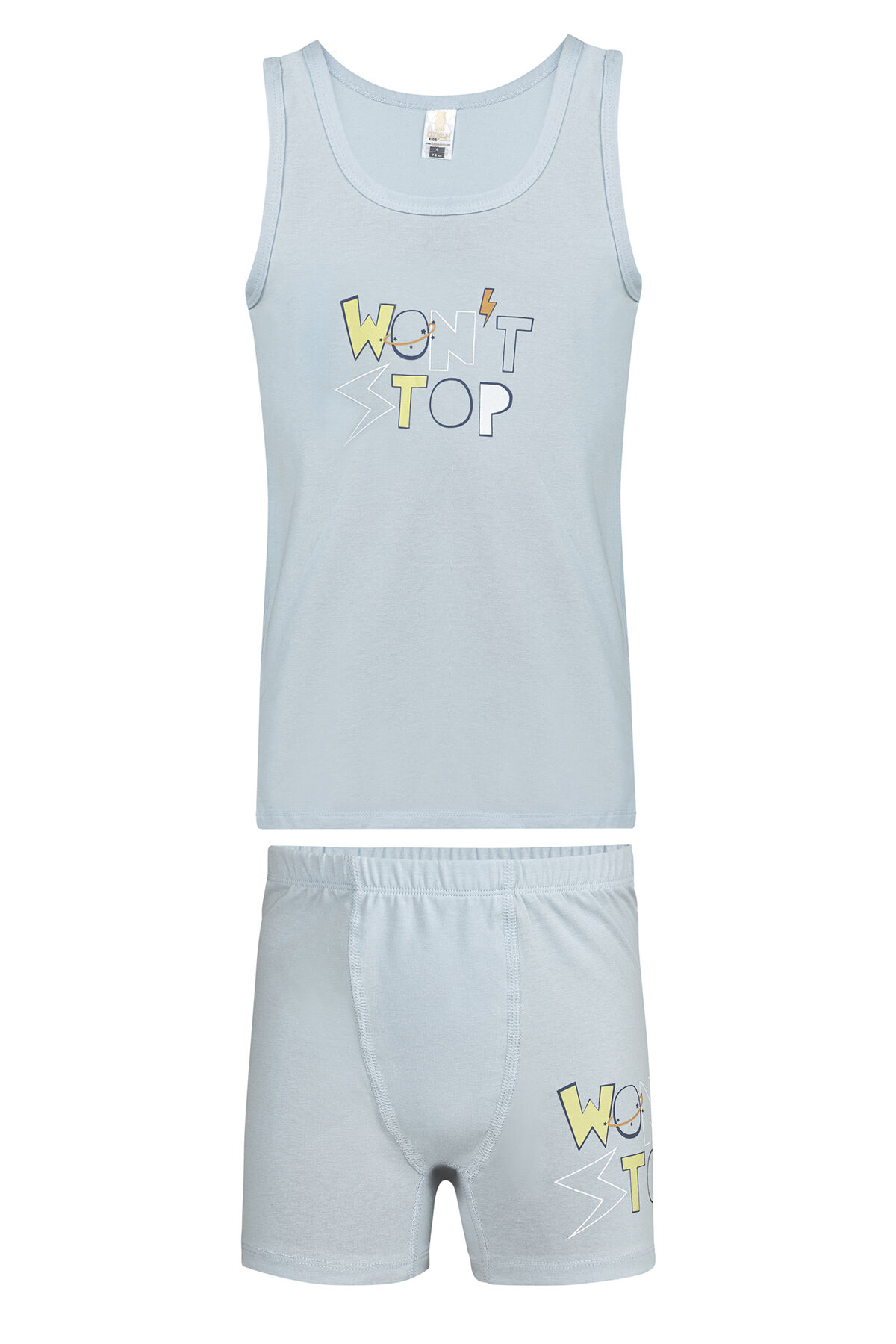 Özkan 32034 Erkek Çocuk Pamuklu Mavi Kalın Askılı Atlet Şort İç Giyim Takım;