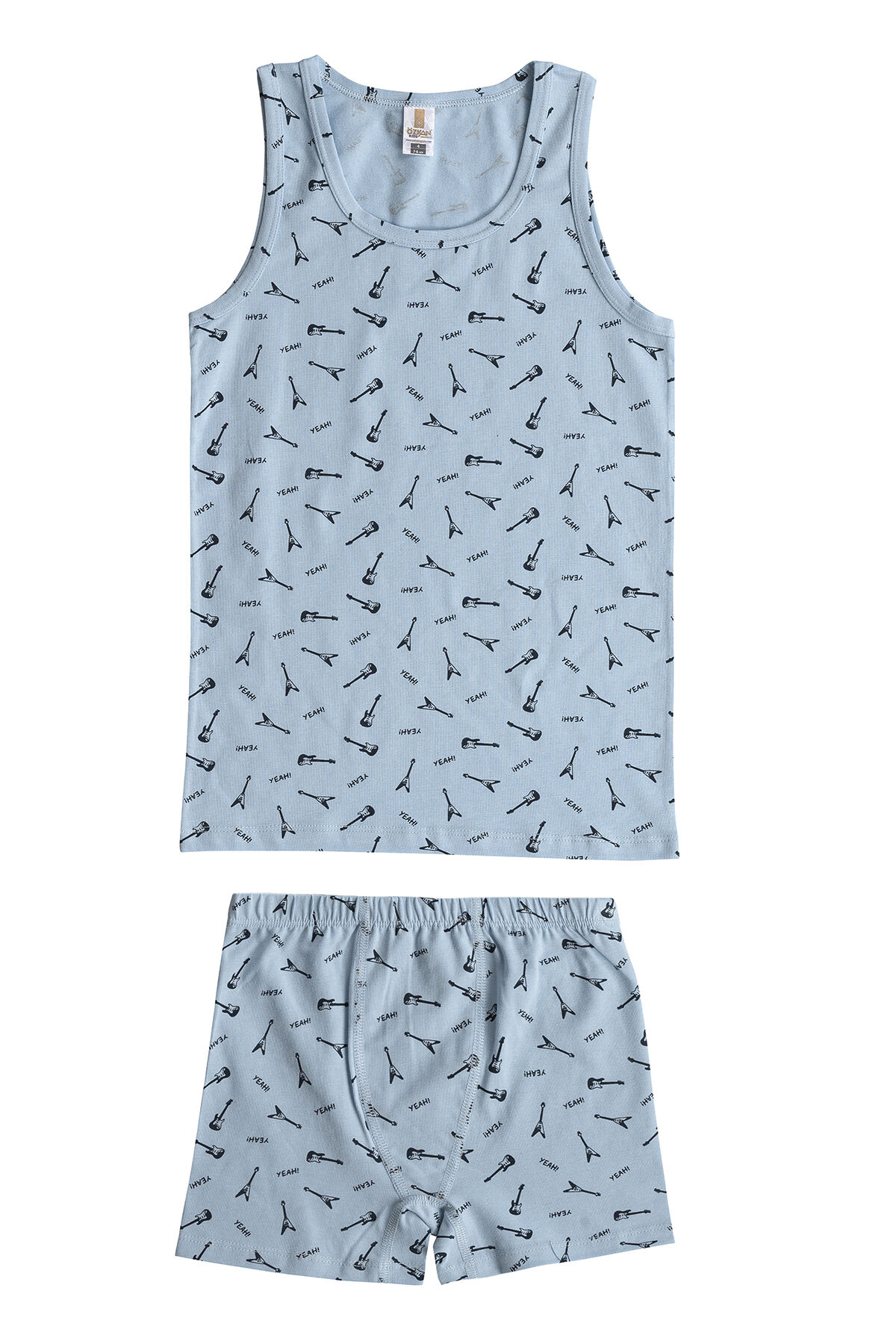 Özkan 32046 Erkek Çocuk Pamuklu Desenli Likralı Süprem Esnek Rahat Kalın Askılı Atlet Şort İç Giyim Takım;