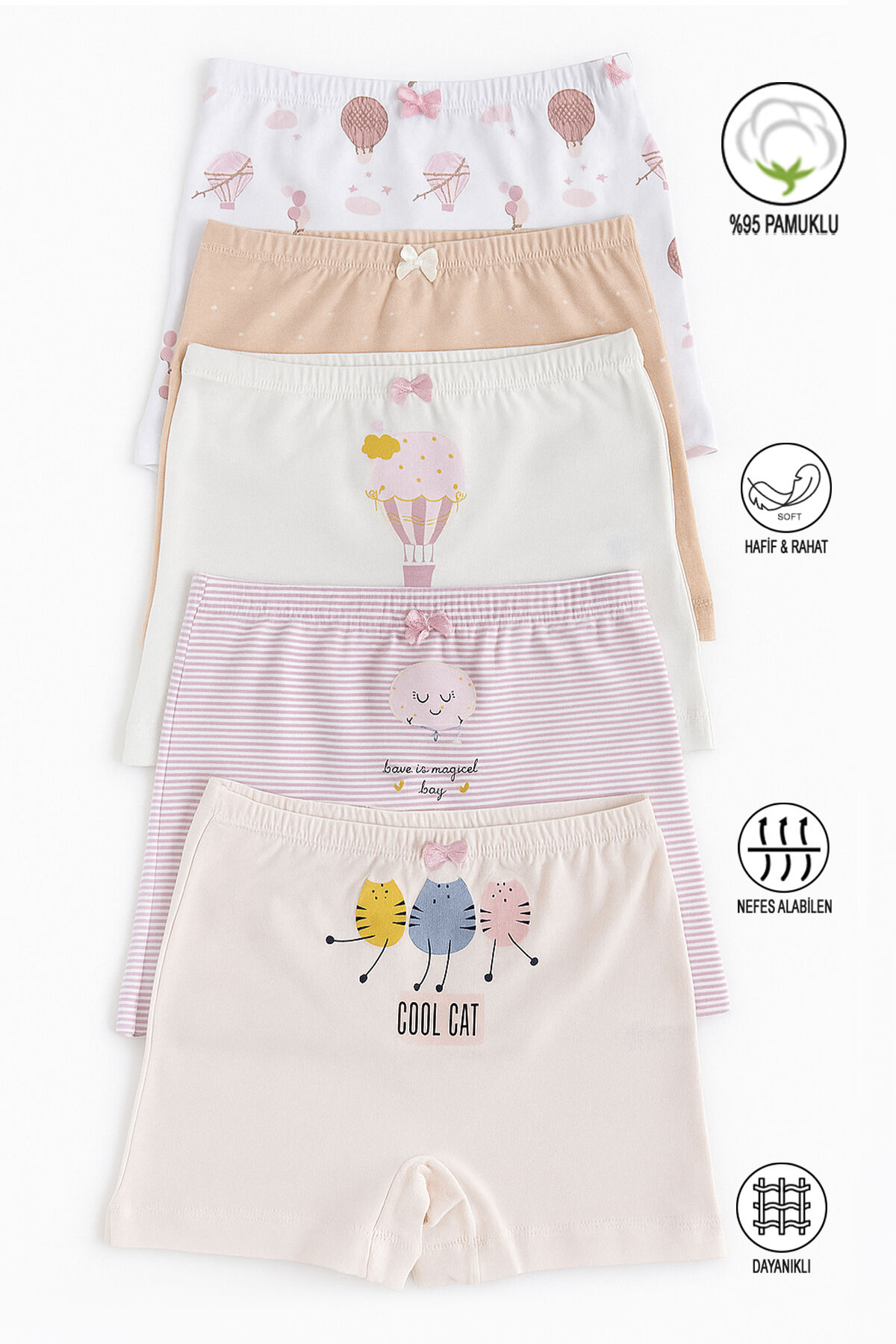 Özkan 41602 5'li Paket Kız Çocuk Karışık Renkli Desenli Pamuklu Yumuşak Rahat Şort Boxer