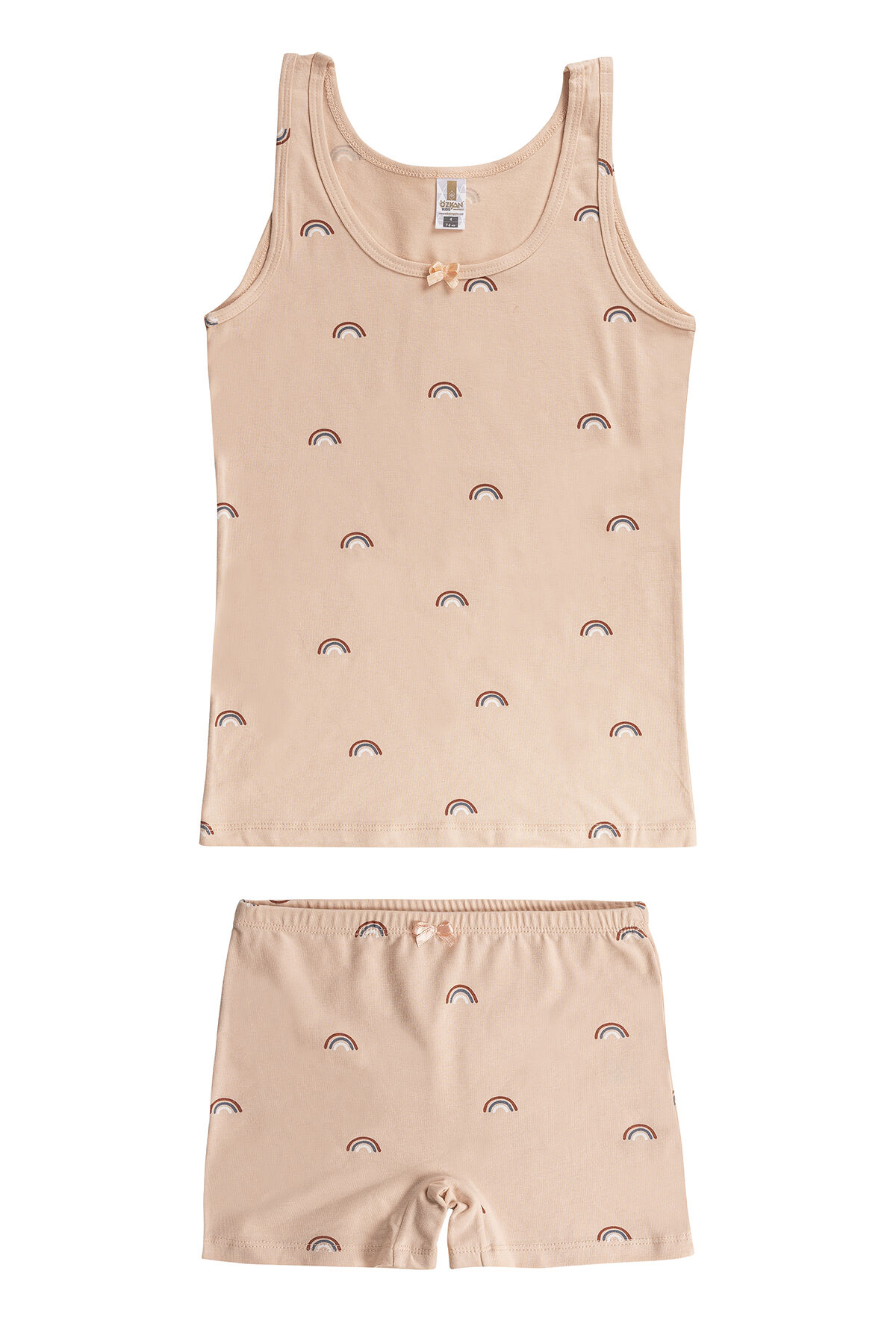Özkan 43161 Kız Çocuk Pamuklu Desenli Likralı Süprem Esnek Rahat Kalın Askılı Atlet Şort İç Giyim Takım;