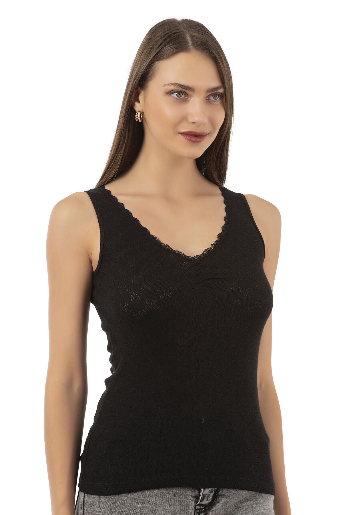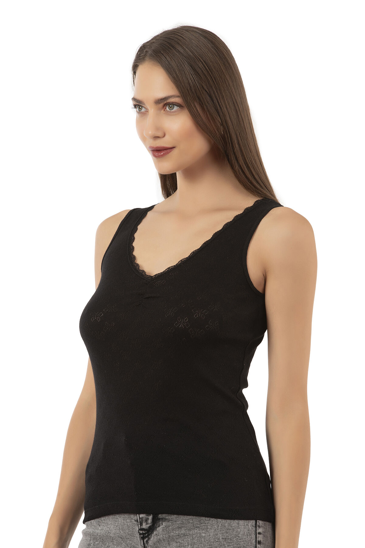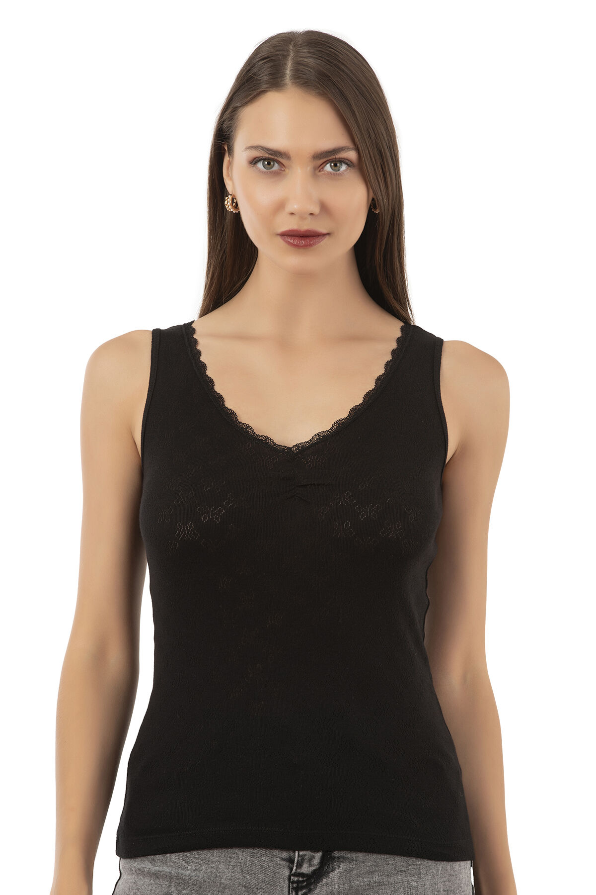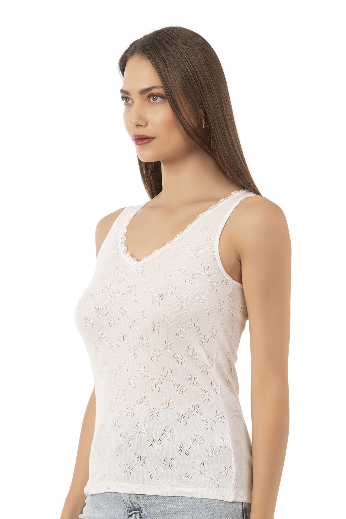 Özkan 20584 Kadın Ribana Pamuklu Dantelli Transferli Kalın Askılı Atlet