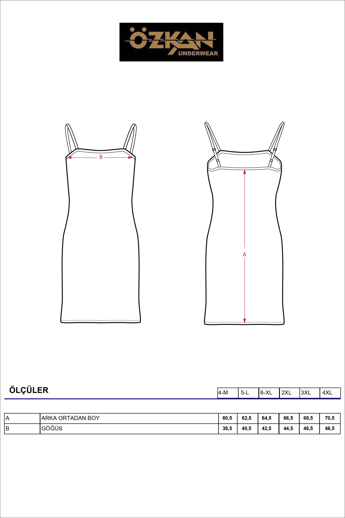 Özkan 7126 Kadın Viskon Kumaş Rahat Esnek Yumuşak Ayarlanabilir Askılı Kombinezon Jüpon Astar;