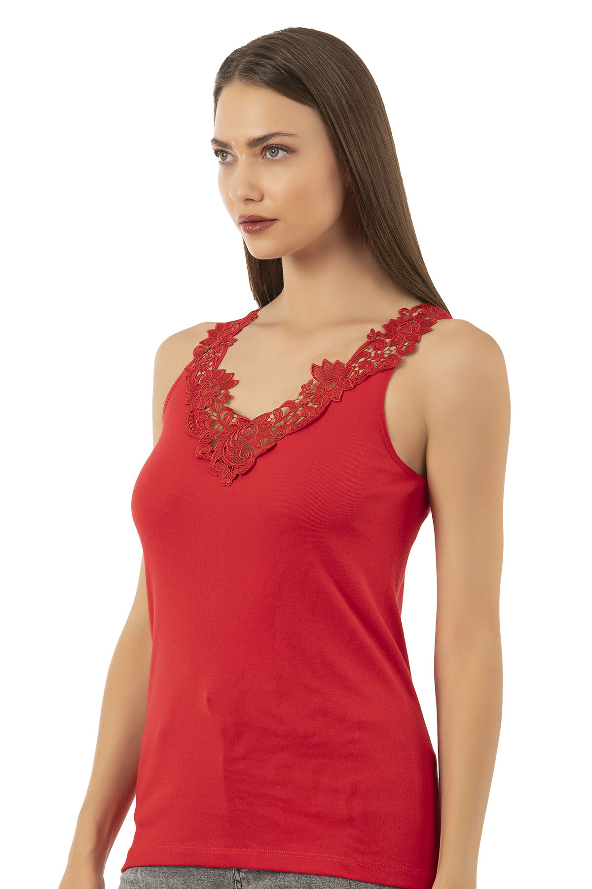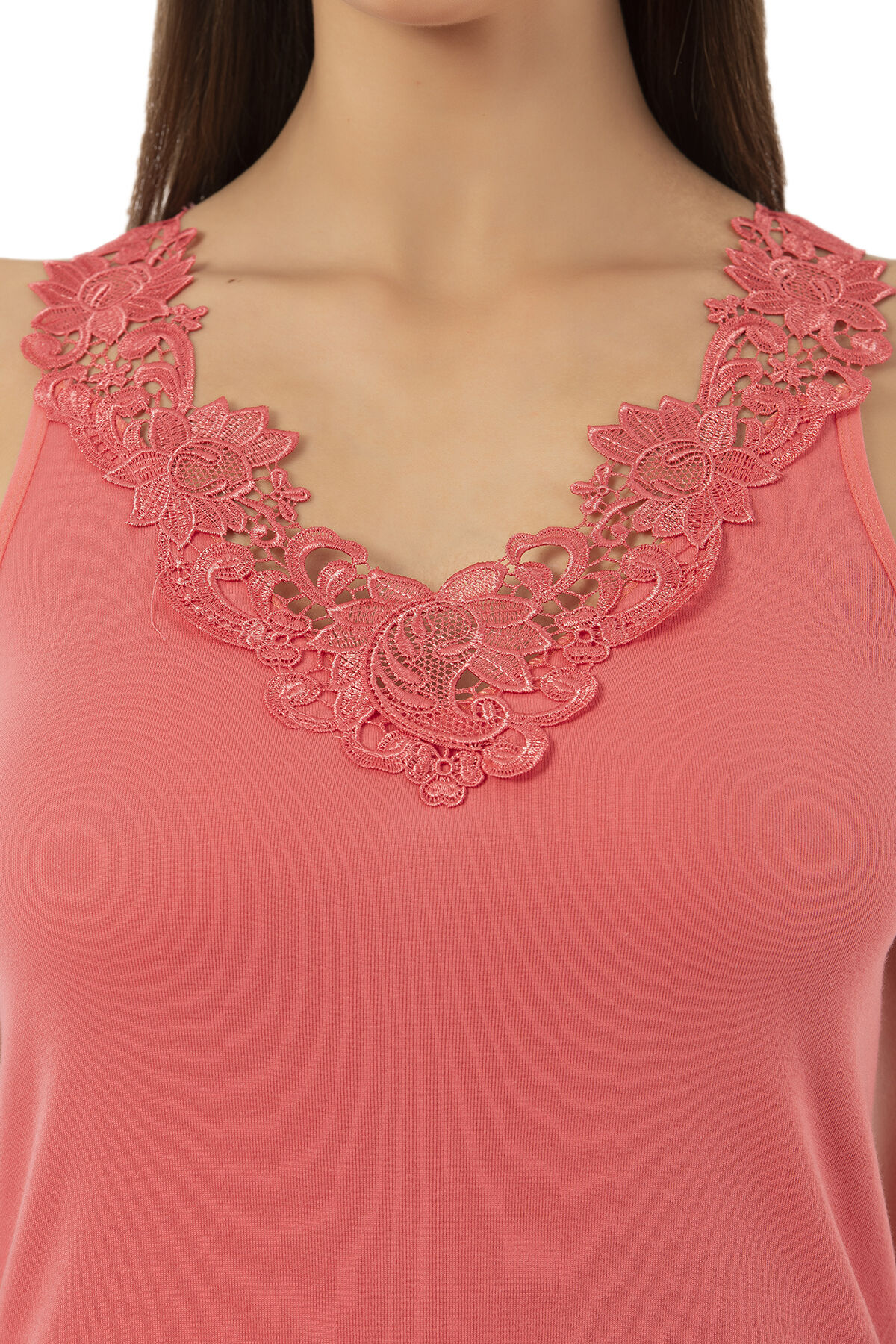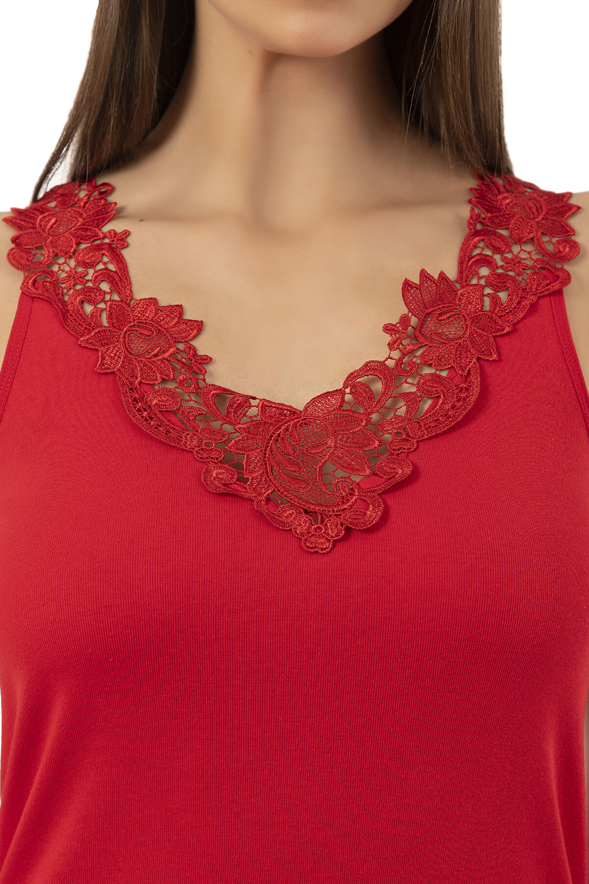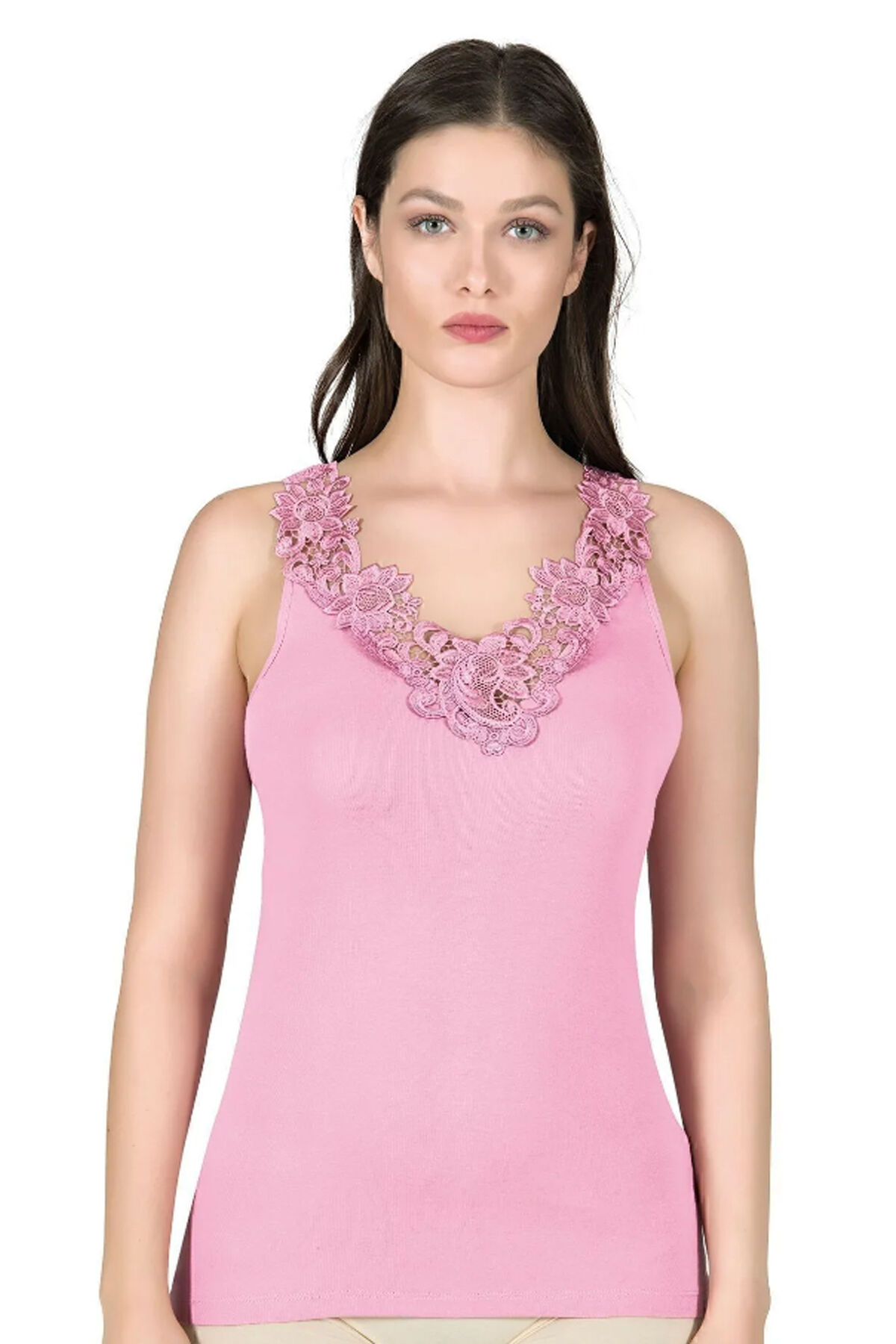 Özkan 2001 Kadın Pamuklu Ribana Dantelli Güpürlü Manolya Atlet;