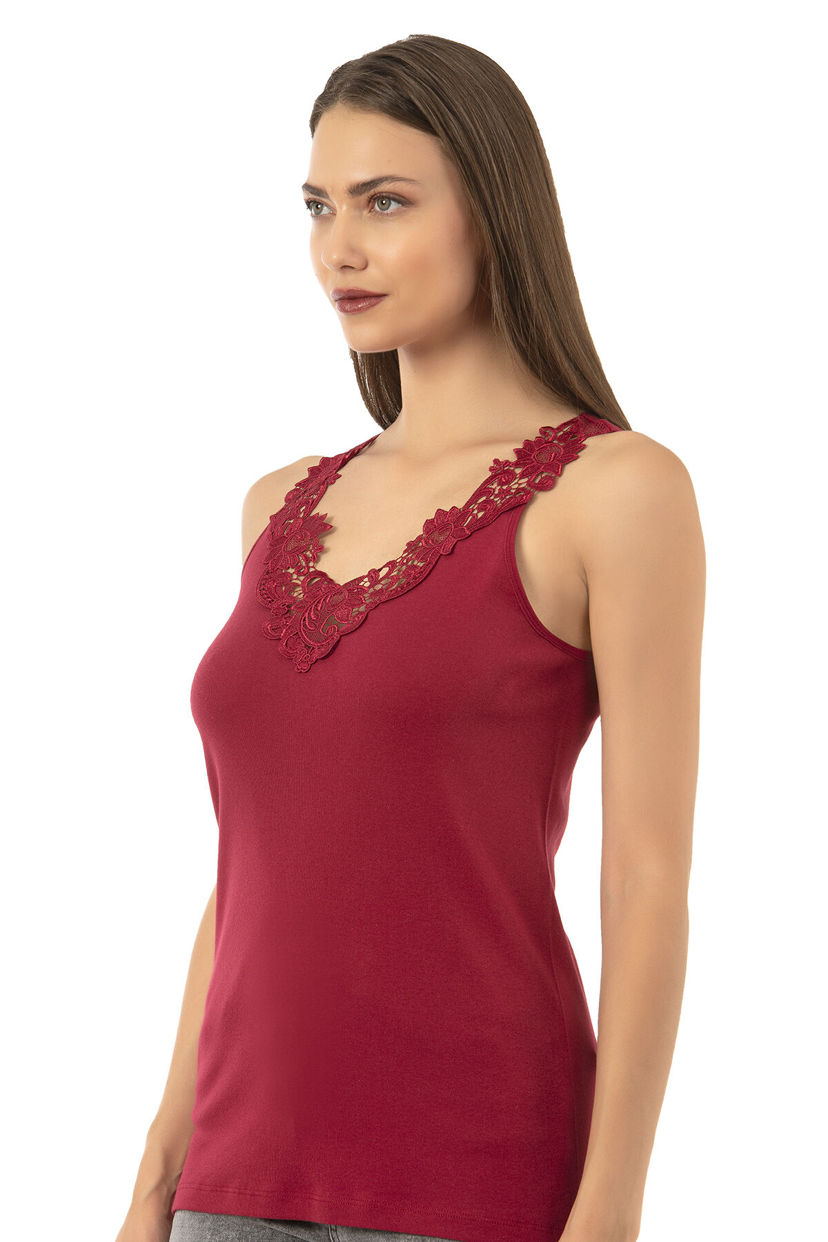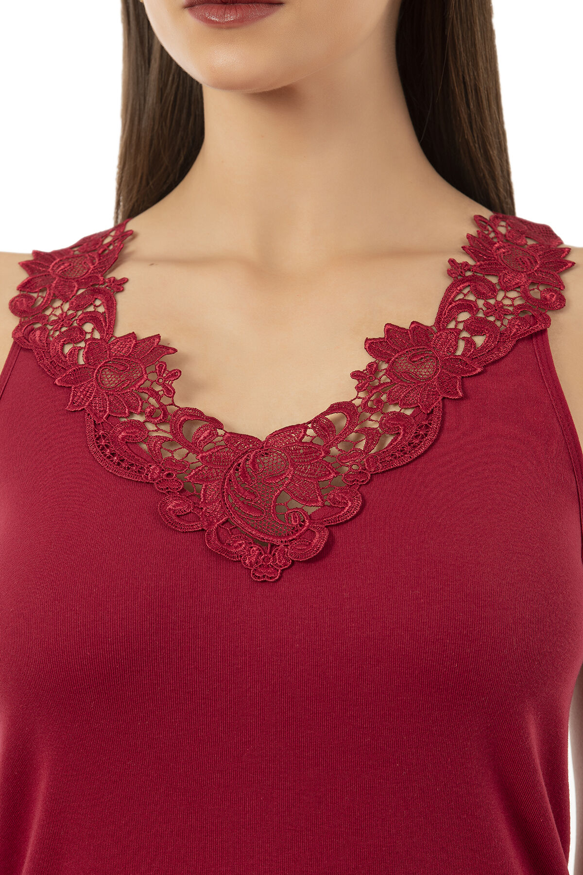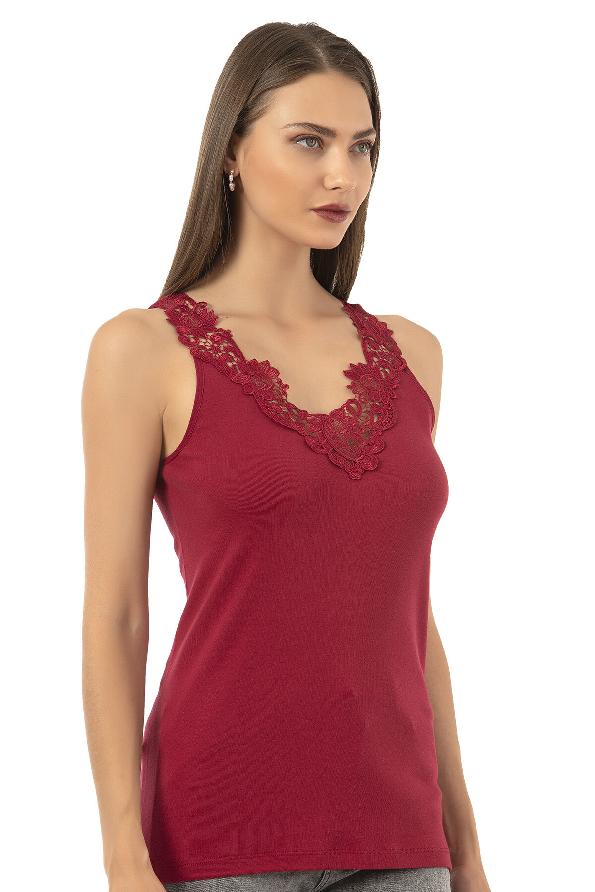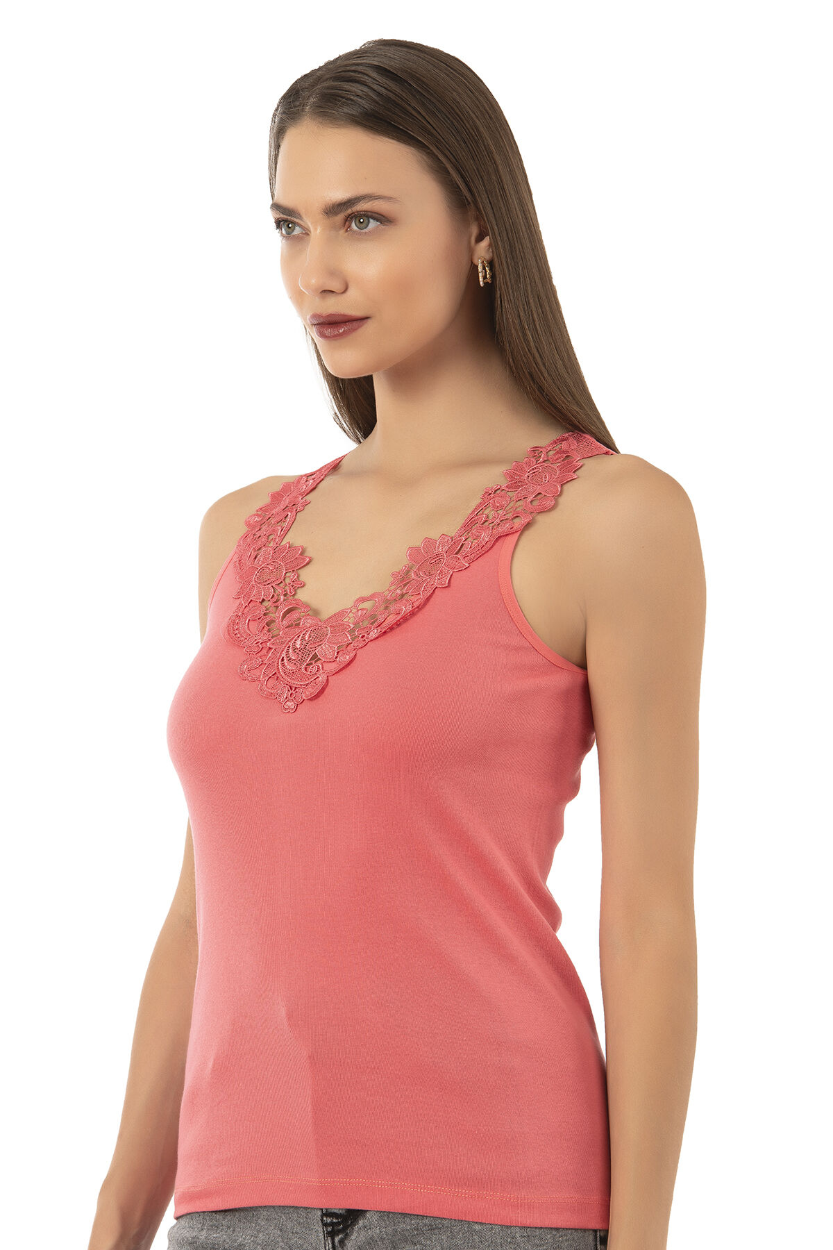 Özkan 2001 Kadın Pamuklu Ribana Dantelli Güpürlü Manolya Atlet;