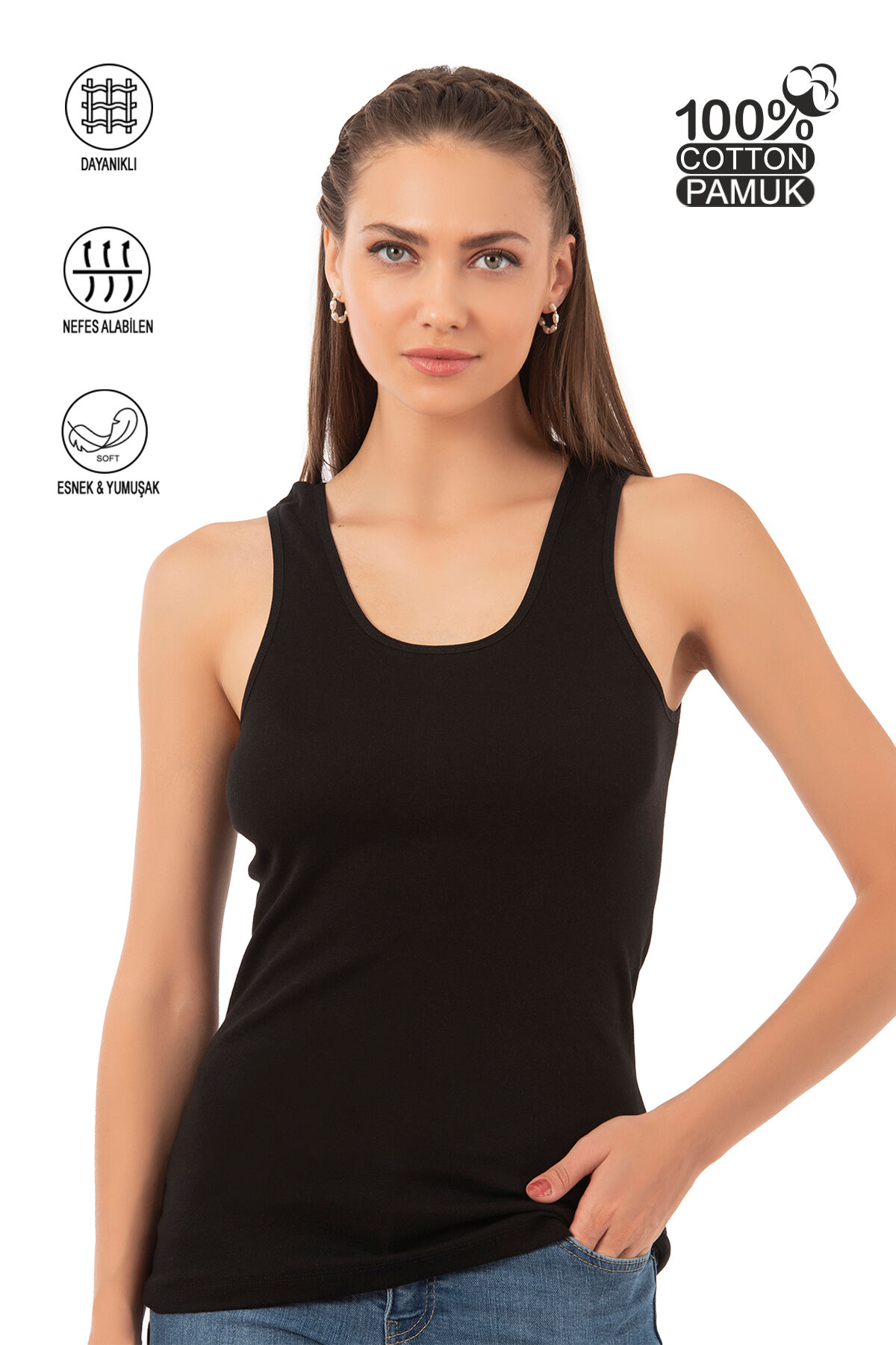 Özkan 0111 Kadın %100 Pamuklu Ribana Esnek Rahat Biyeli Kalın Askılı Örme Atlet;