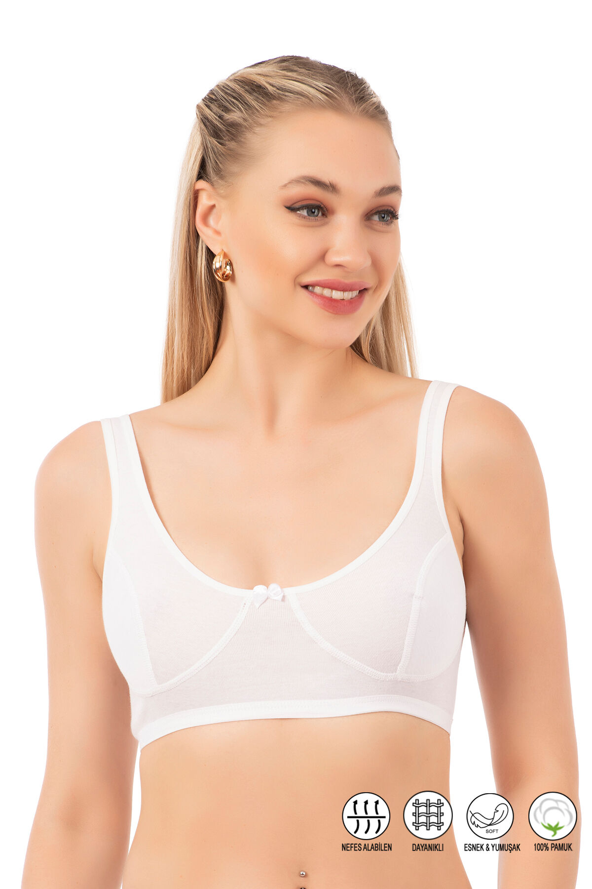 Özkan 0564 Kadın %100 Pamuklu Ribana Boş Kap Desteksiz Telsiz Balensiz Kalın Askılı Yarım Atlet Sütyen;