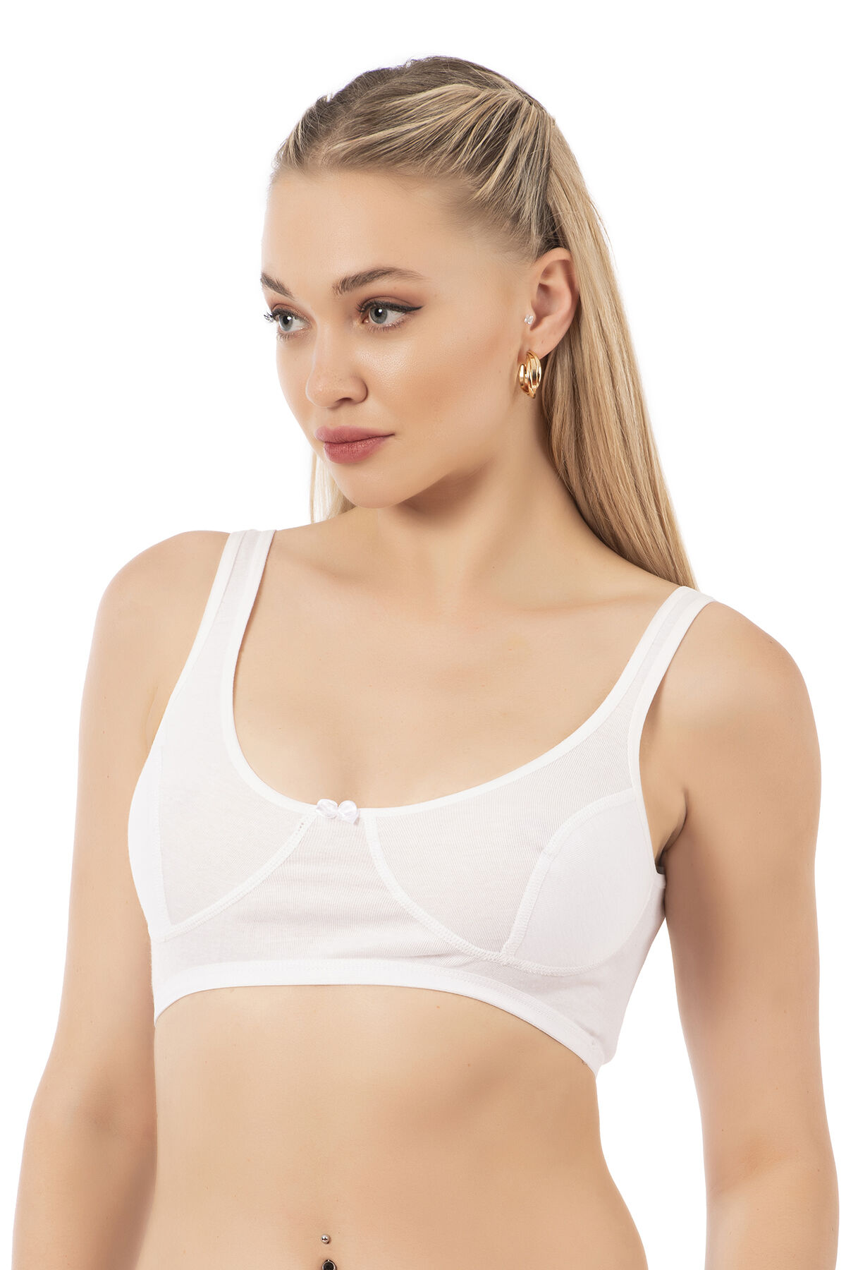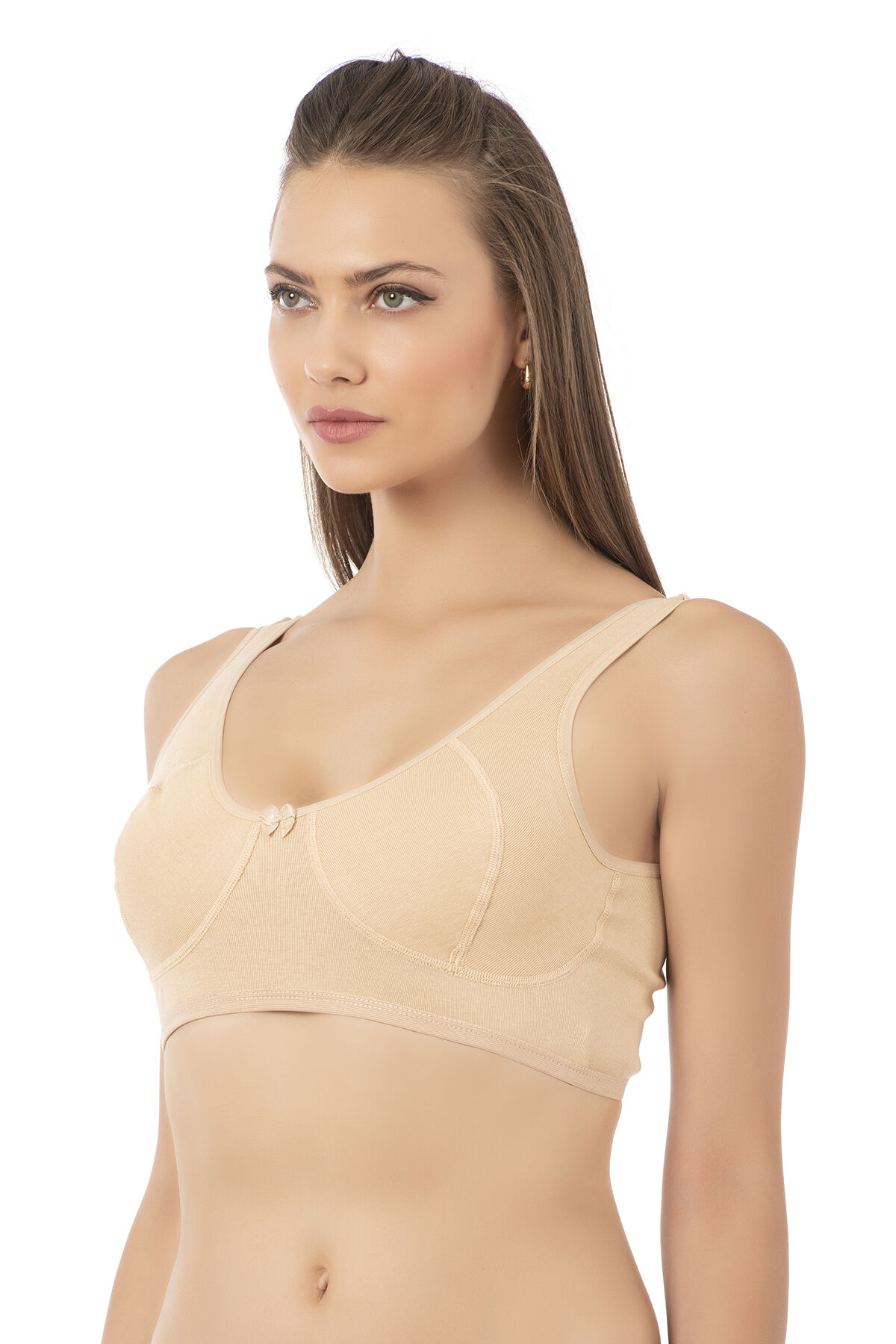 Özkan 0564 Kadın %100 Pamuklu Ribana Boş Kap Desteksiz Telsiz Balensiz Kalın Askılı Yarım Atlet Sütyen