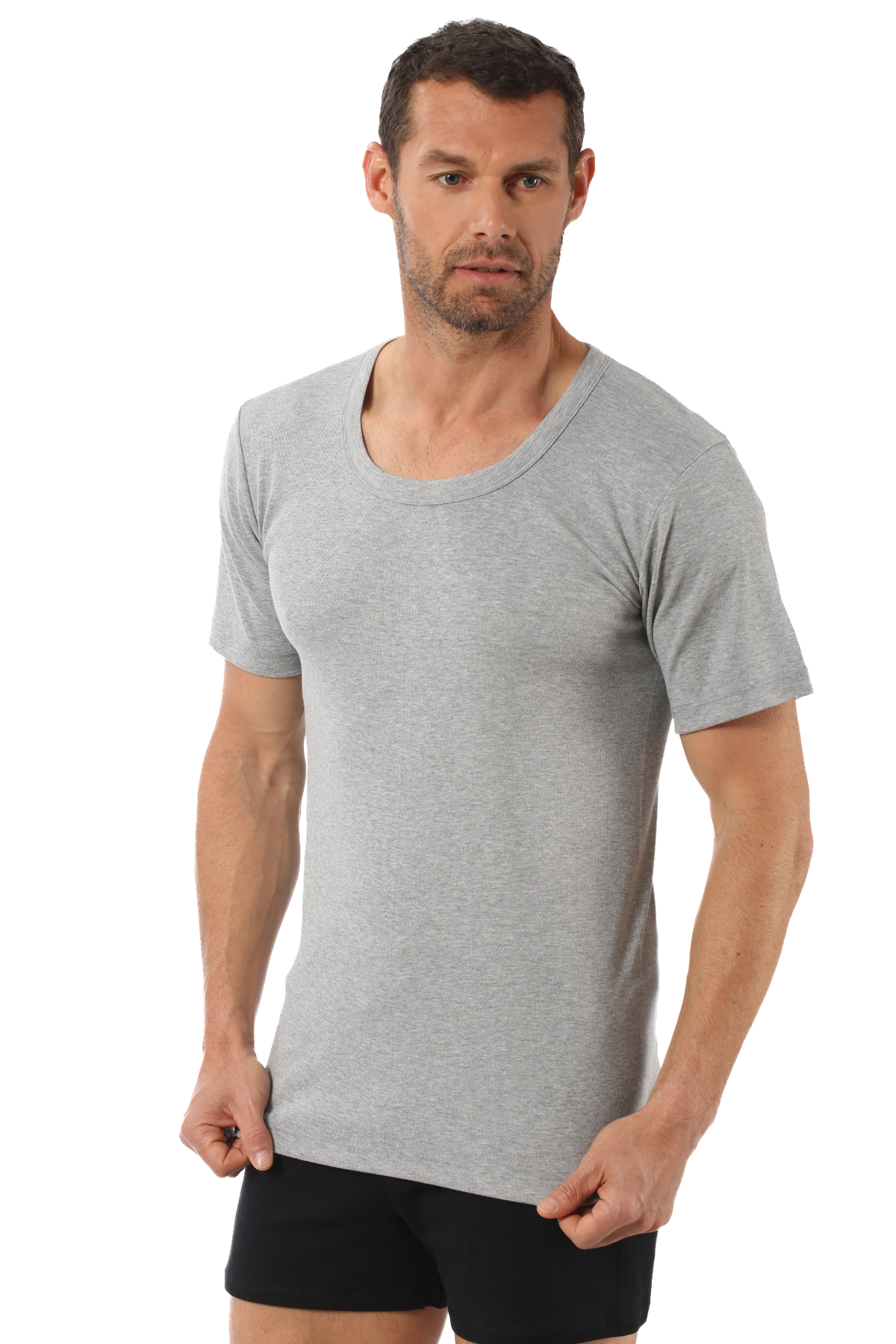 Özkan 0115 Erkek %100 Pamuk Ribana Kumaş Esnek Rahat Geniş Yaka Kısa Kollu Fanila Atlet