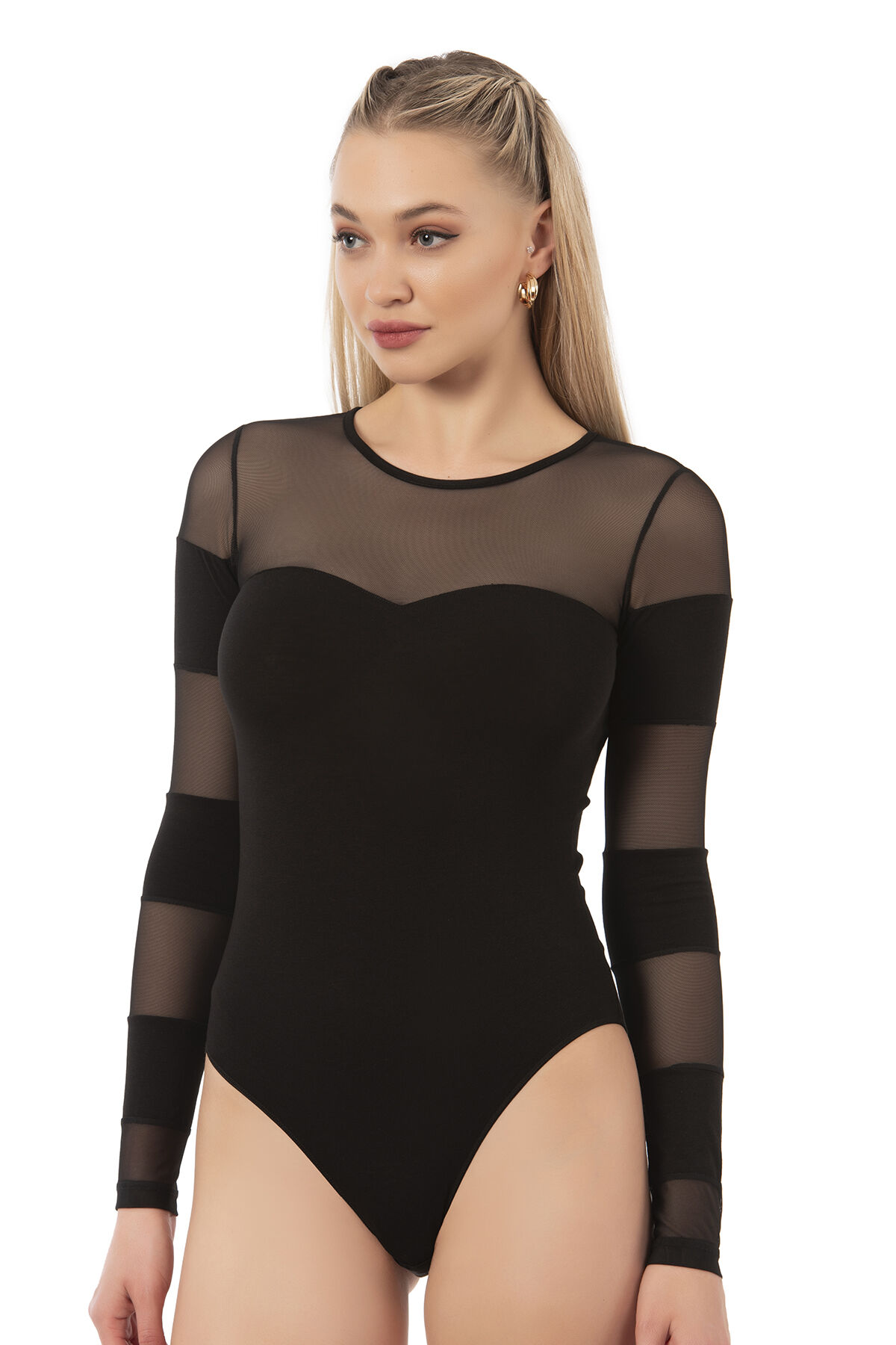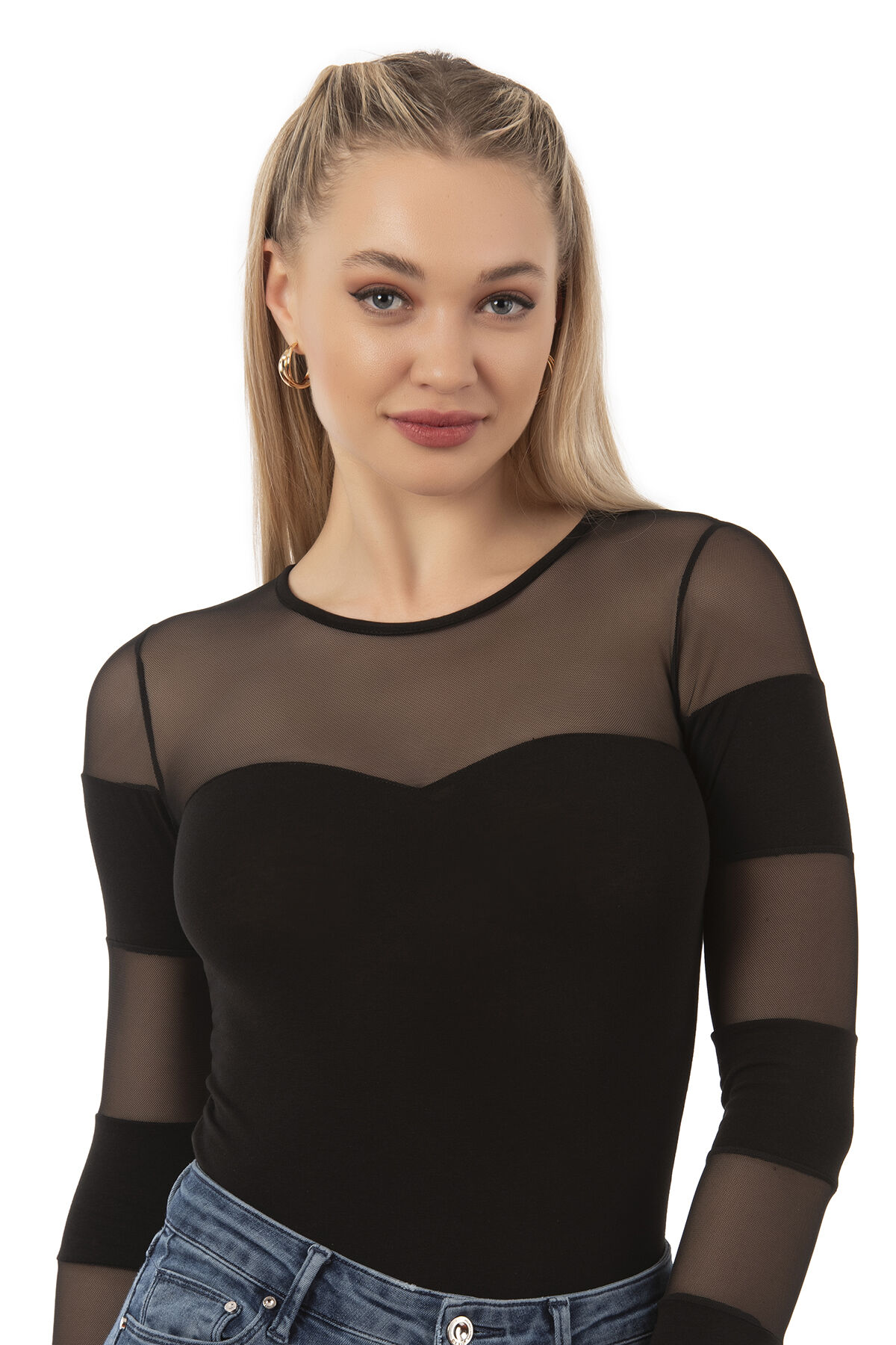 Özkan 22773 Kadın Pamuklu Önü Tül Detaylı Uzun Kollu Yuvarlak Yaka Kancalı Çıtçıtlı Body Zıbın;