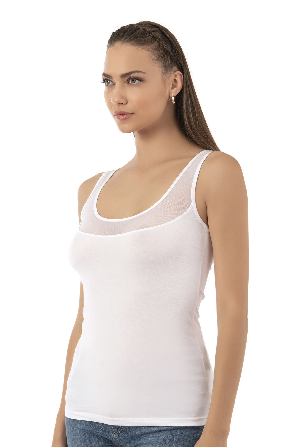 Özkan 20575 Kadın Pamuklu Likralı Süprem Tül Detaylı Kalın Askılı Havuz Yaka Atlet