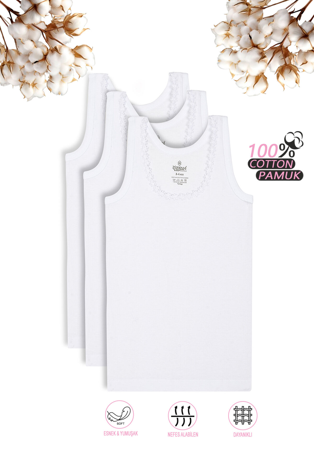 Özkan 0800 3'lü Paket Kız Çocuk %100 Pamuklu Ribana Esnek Rahat Yakası Çiçek Desenli Kalın Askılı Atlet