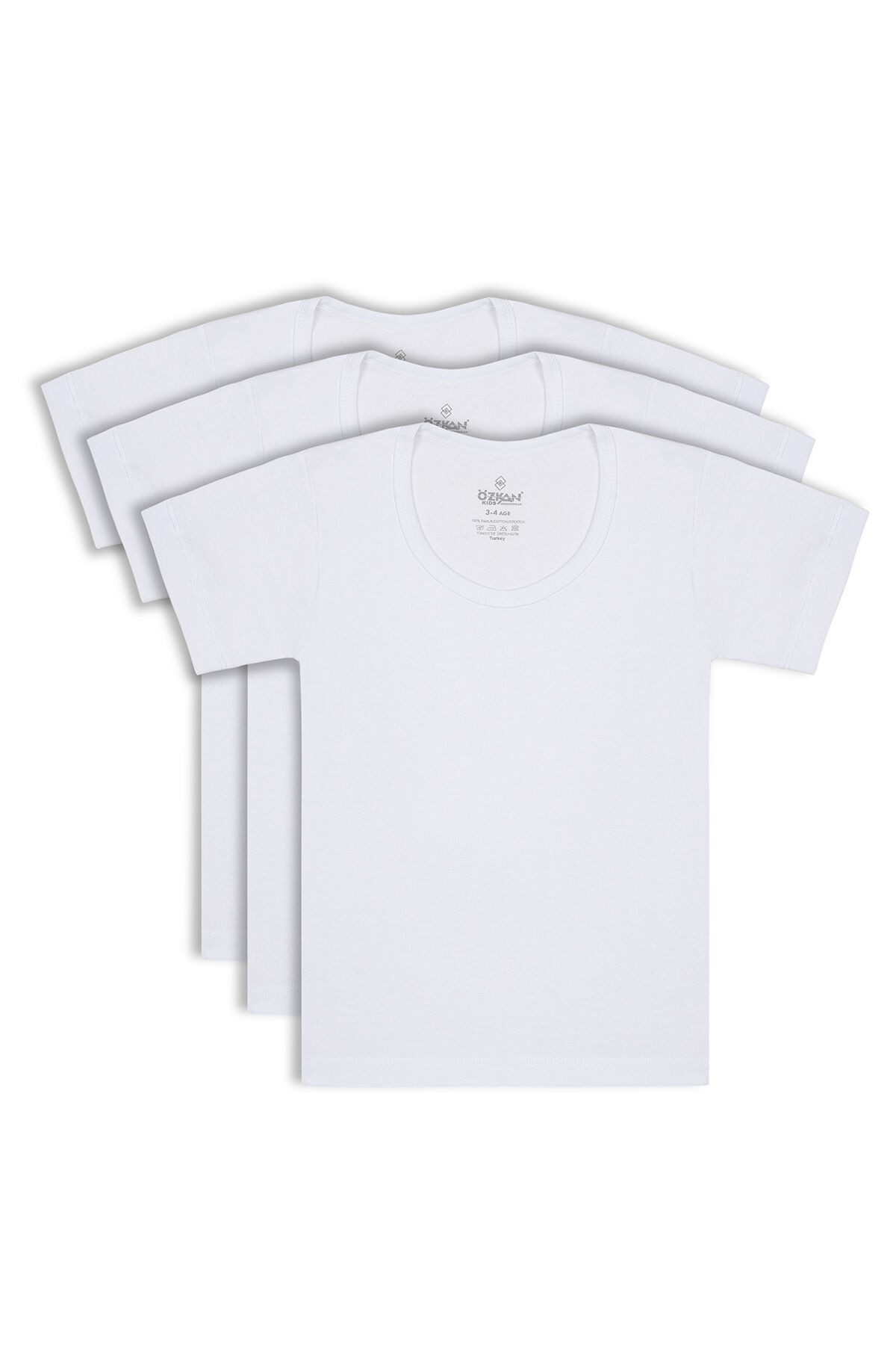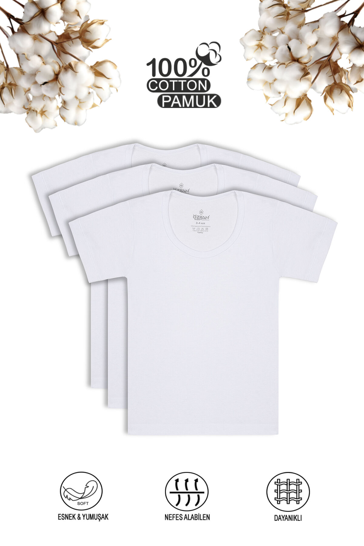 Özkan 0803 3'lü Paket Erkek Çocuk %100 Pamuklu Ribana Esnek Rahat Kısa Kollu Geniş Yaka Atlet Fanila;