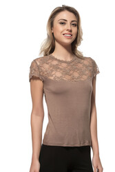Özkan 7371 Kadın Premium Yumuşak Rahat Kumaş Viskon Dantel Detaylı Kısa Kollu Örme Bluz